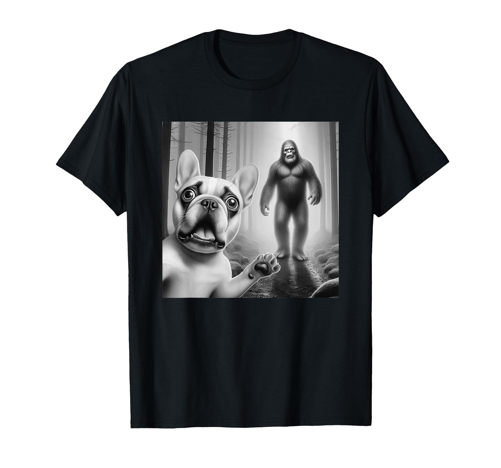Funny French bulldog Selfie with bigfoot sasquatch T-Shirt for Men Women Kids