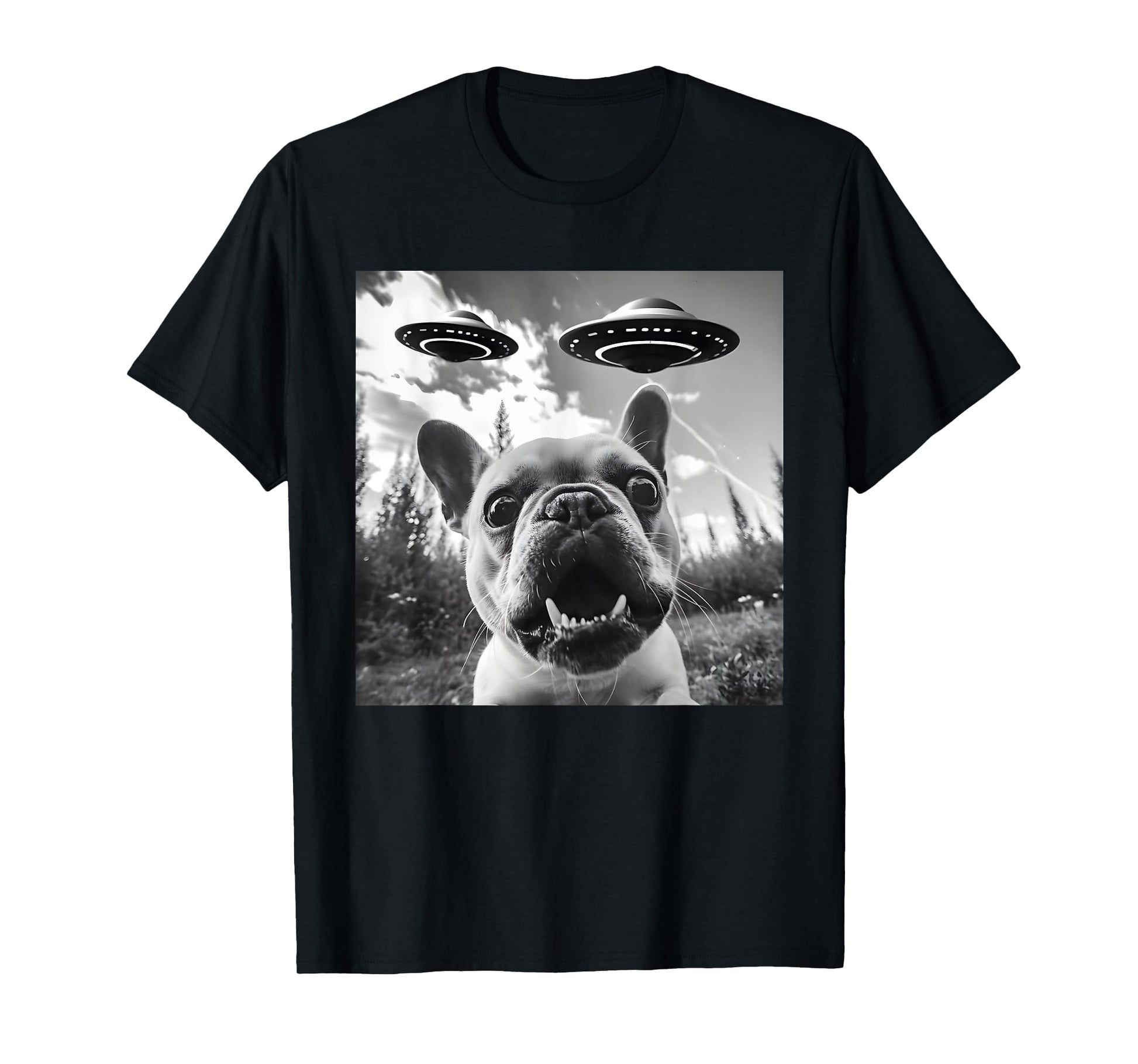 Funny French Bulldog Selfie with UFO Men Graphic T-Shirt