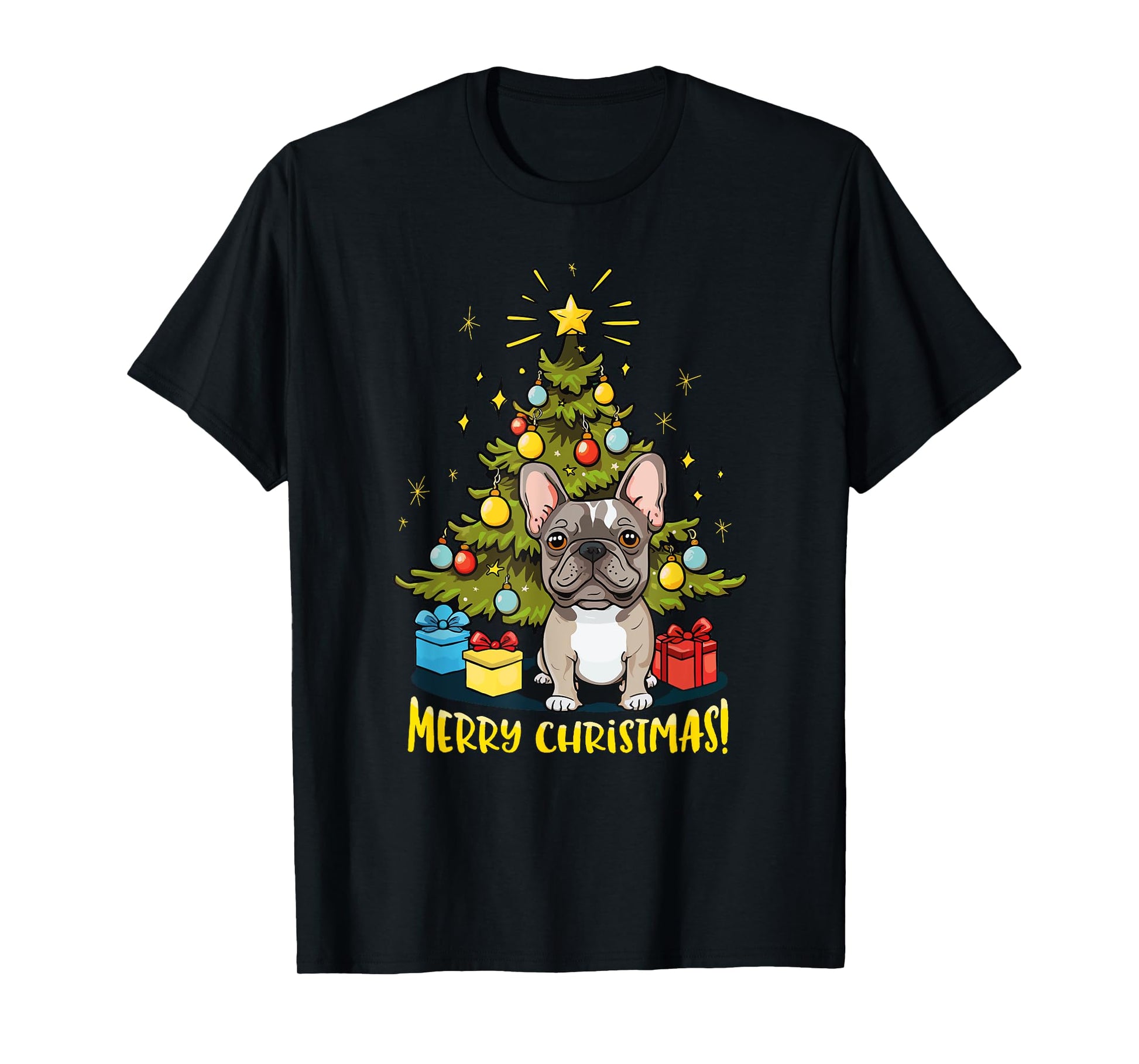 Funny French Bulldog With Christmas Tree - Merry Christmas T-Shirt
