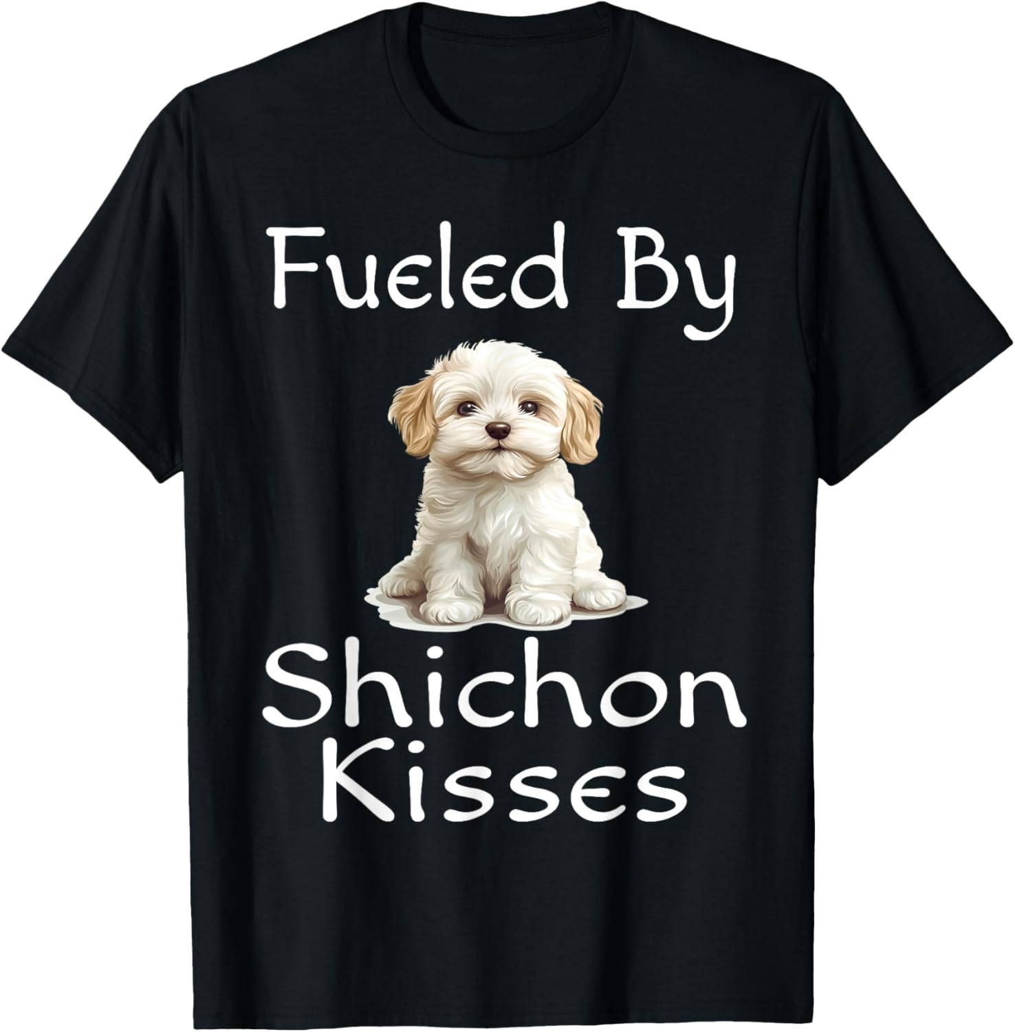 Funny Fueled By Shichon Kisses Puppy Dog Lover Mom Dad T-Shirt