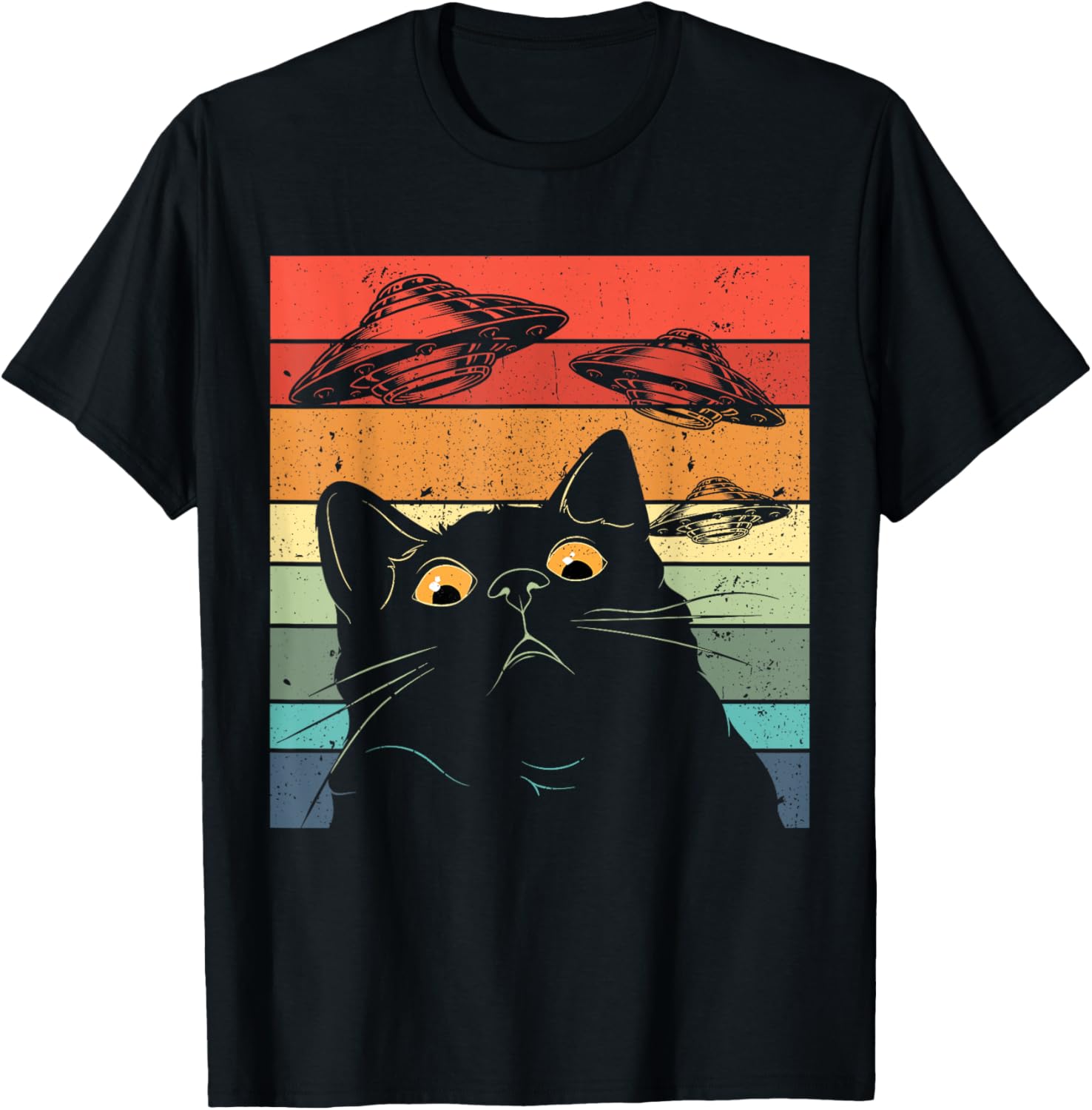 Funny Cat Tee, Galaxy Cat Shirt Spaceship Alien Cat UFO T-Shirt