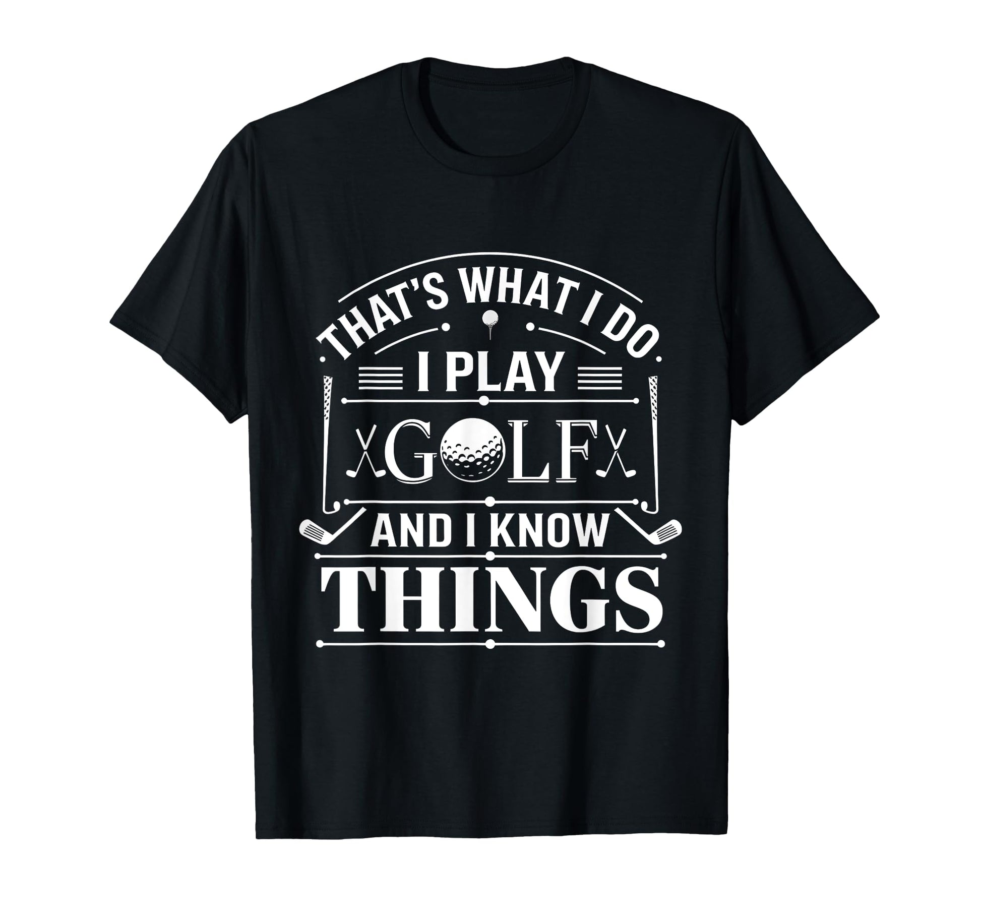 Funny Golfer 'That's What I Do I Play Golf And I Know Things' T-Shirt - Black, Small, Unisex-Adults/Kids, Short Sleeve, Modern Straight Fit Jersey, Crew Neck, Letter Print, All Seasons