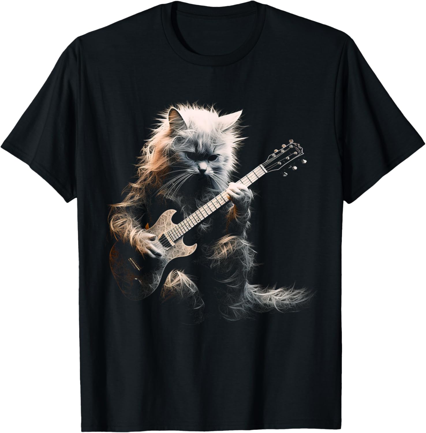 Funny Guitar Cat Rock Cat Playing Guitar T-Shirt