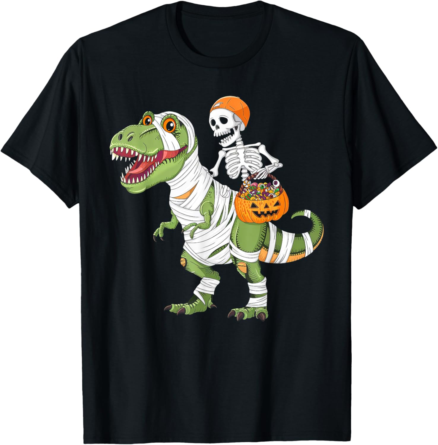 Funny Halloween Skeleton Riding Mummy Dinosaur Boys Kids T-Shirt