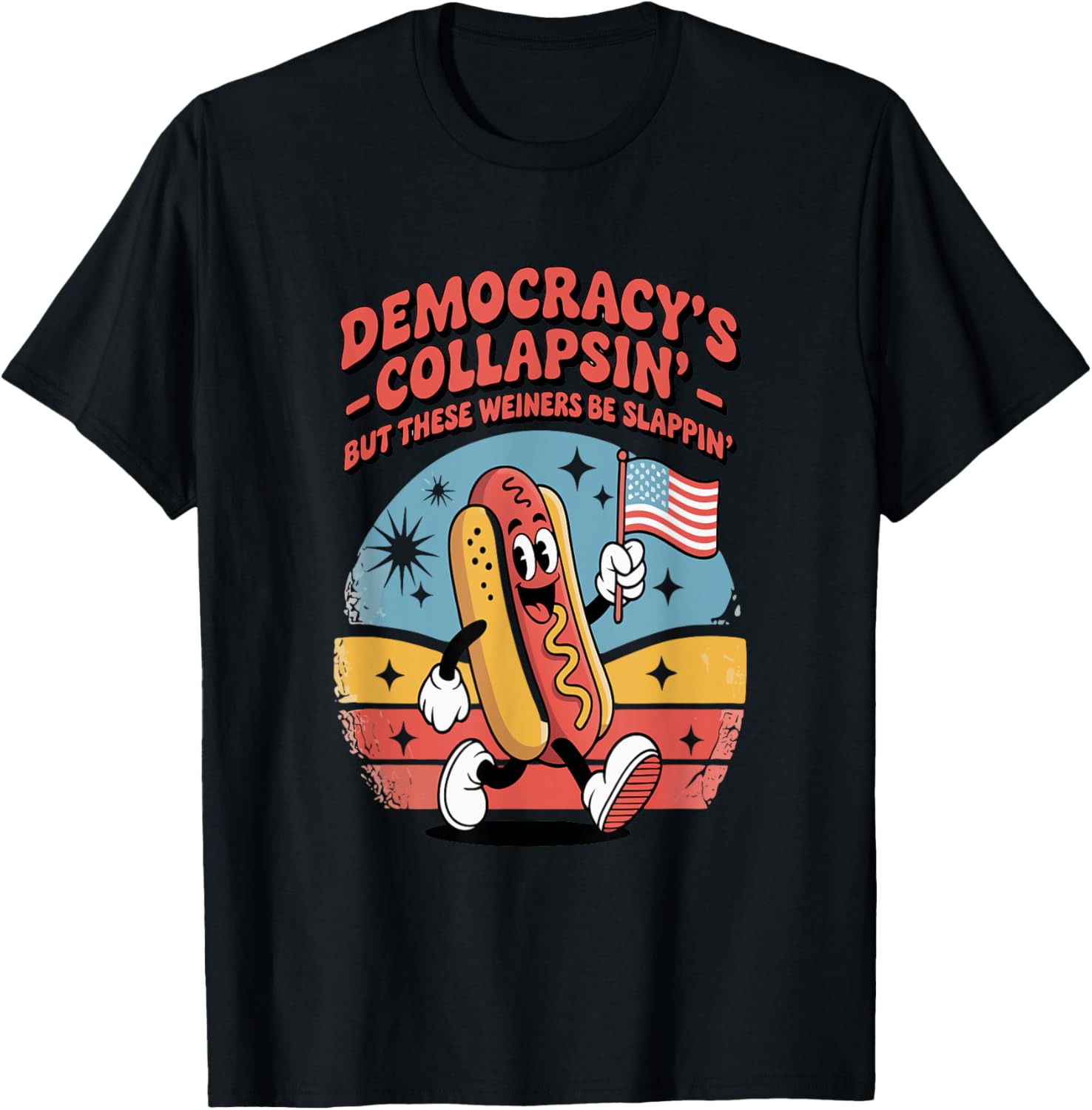 Funny Hotdog Sandwich 4th of July Democracy Quote T-shirt
