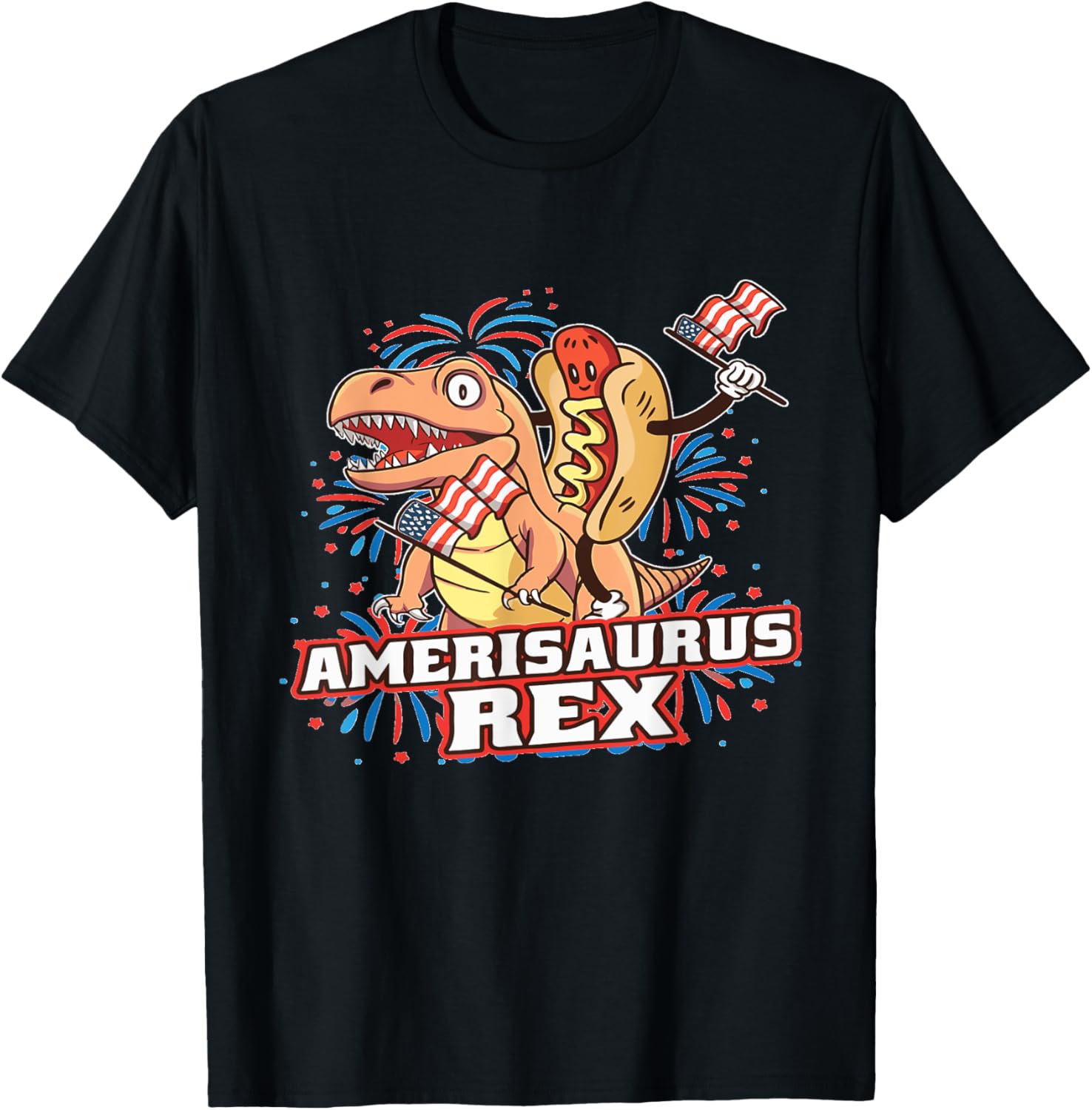 Funny Hotdog T Rex Dinosaur 4th of july Amerisaurus T-Shirt for Women Men