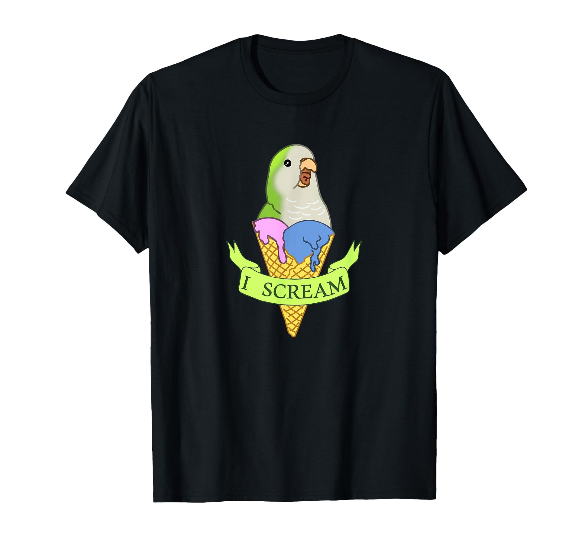 Funny Ice cream Monk Parakeet, I scream Green quaker parrot T-Shirt for Men Women Kids