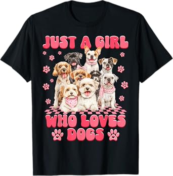 Funny Just A Girl Who Loves Dogs Puppy Love Girls Women Tee T-Shirt