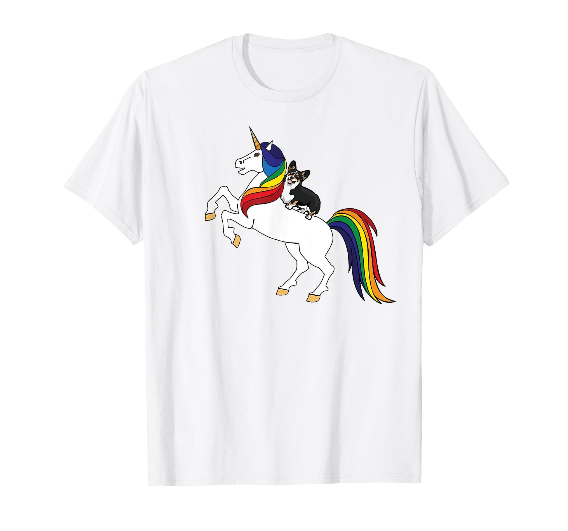 Funny Kids Womens Unicorn Pembroke Black Tri Corgi Lover T-Shirt