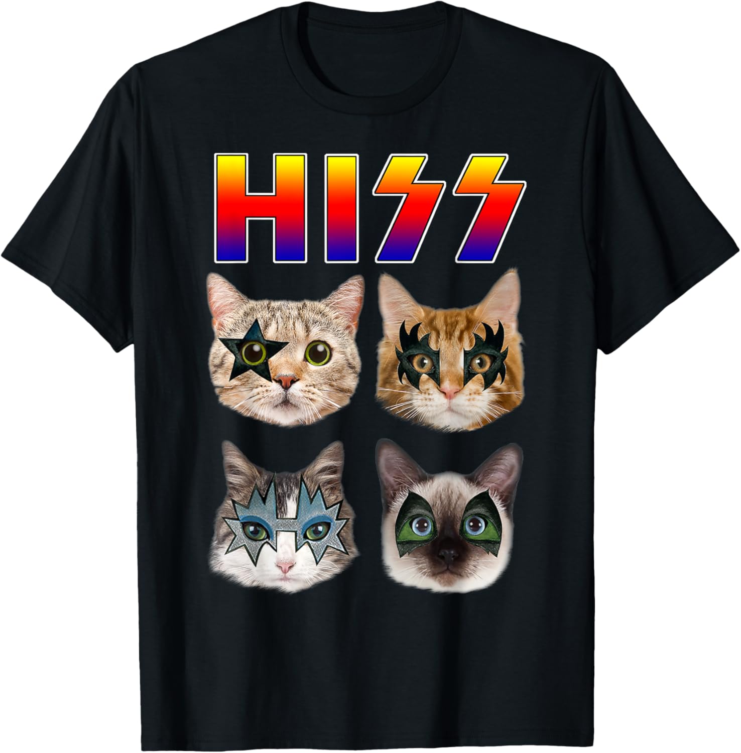 Hiss Funny Cats Kittens Rock Rockin Short Sleeve T-shirt Gift Tee Pun