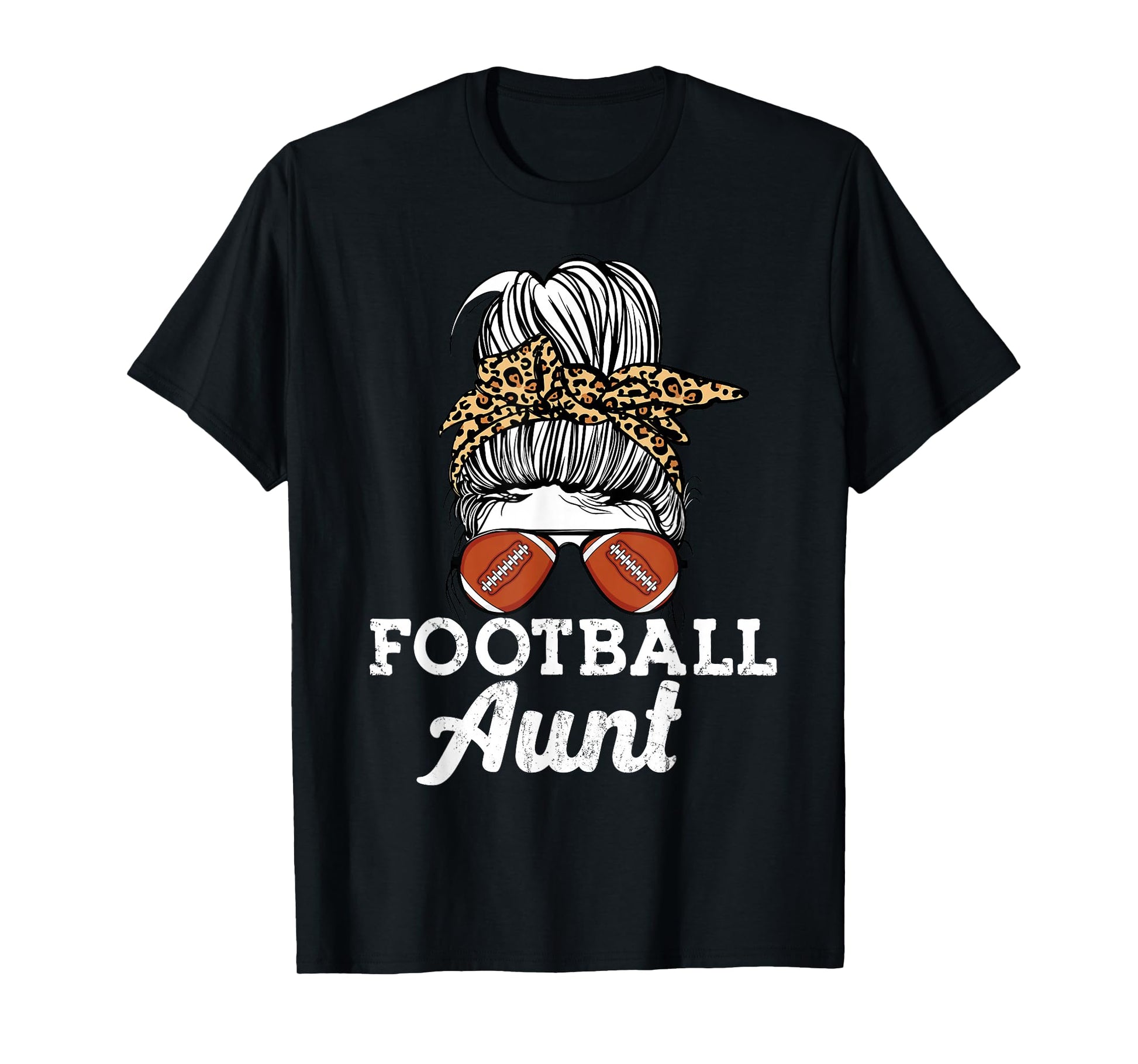 Funny leopard pattern Messy bun Game Lovers football aunt T-Shirt
