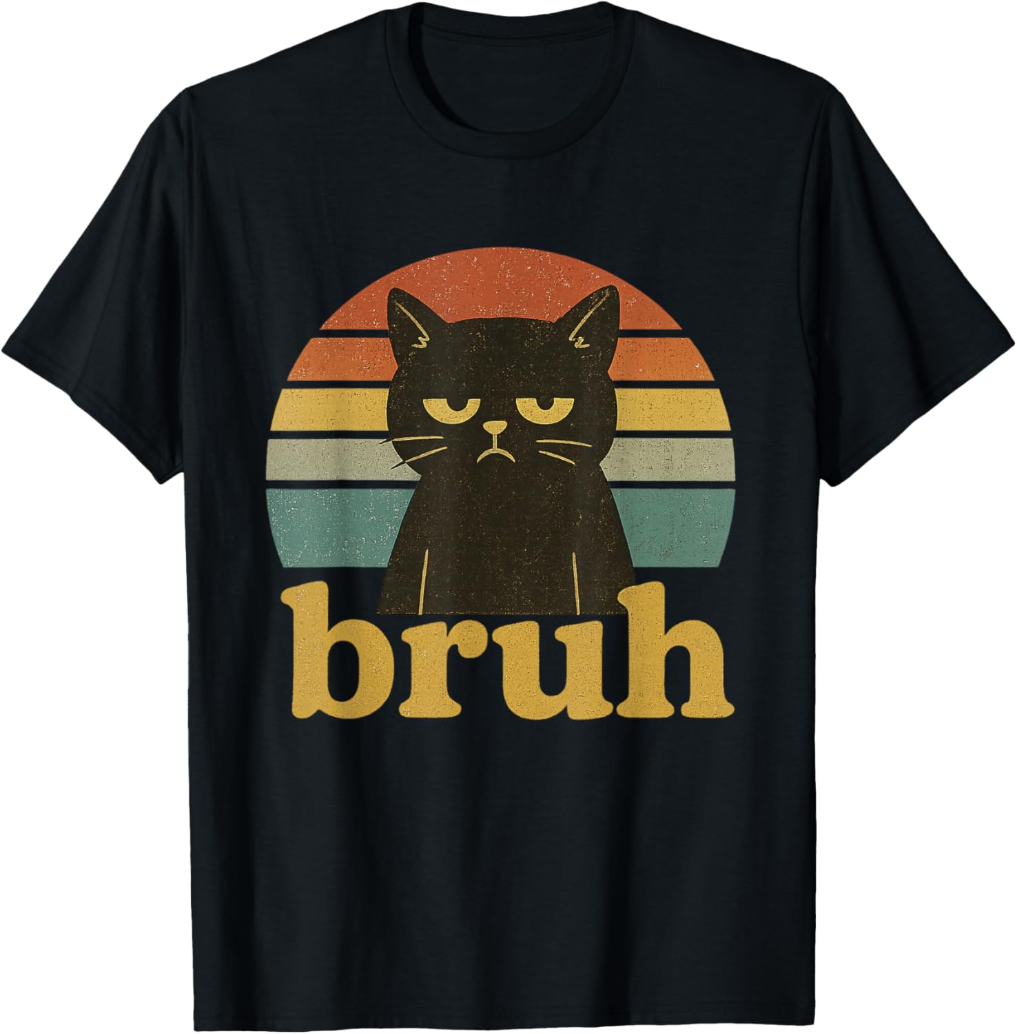 Funny Meme saying Bruh Retro Cat T-Shirt