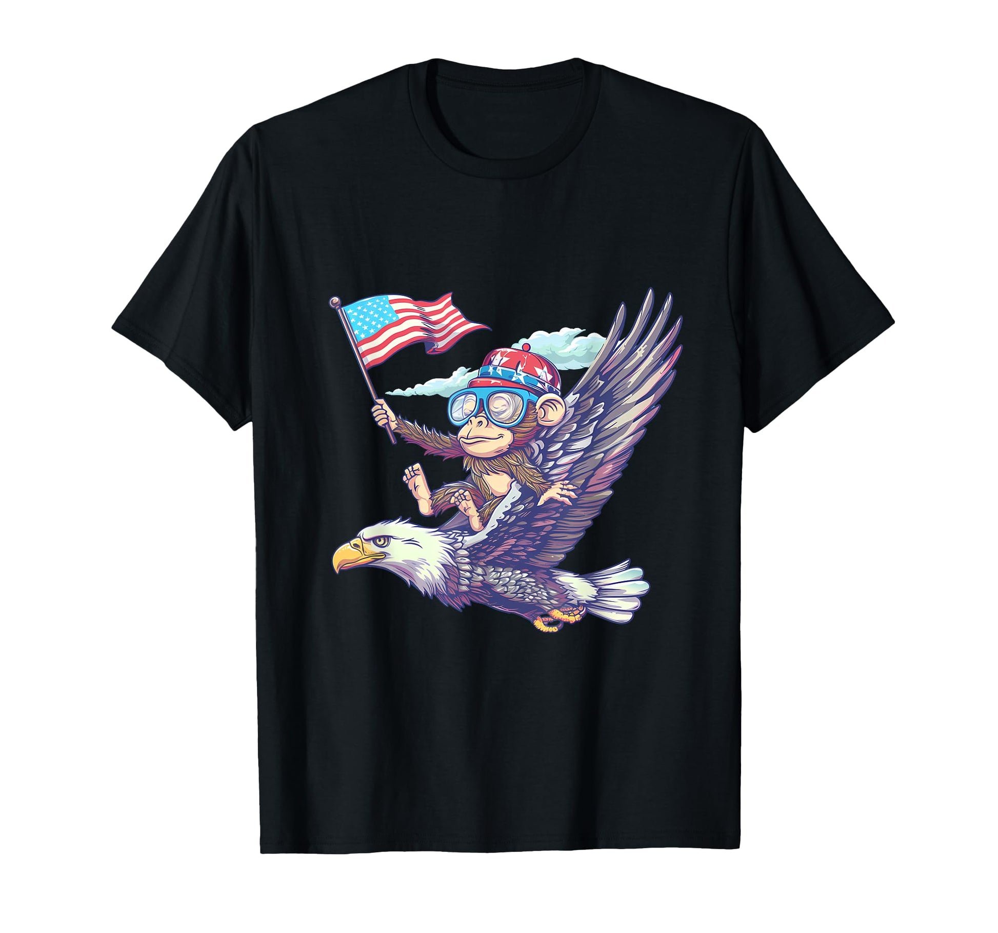 Funny Monkey Bald Eagle American Flag USA Fourth Of July T-Shirt