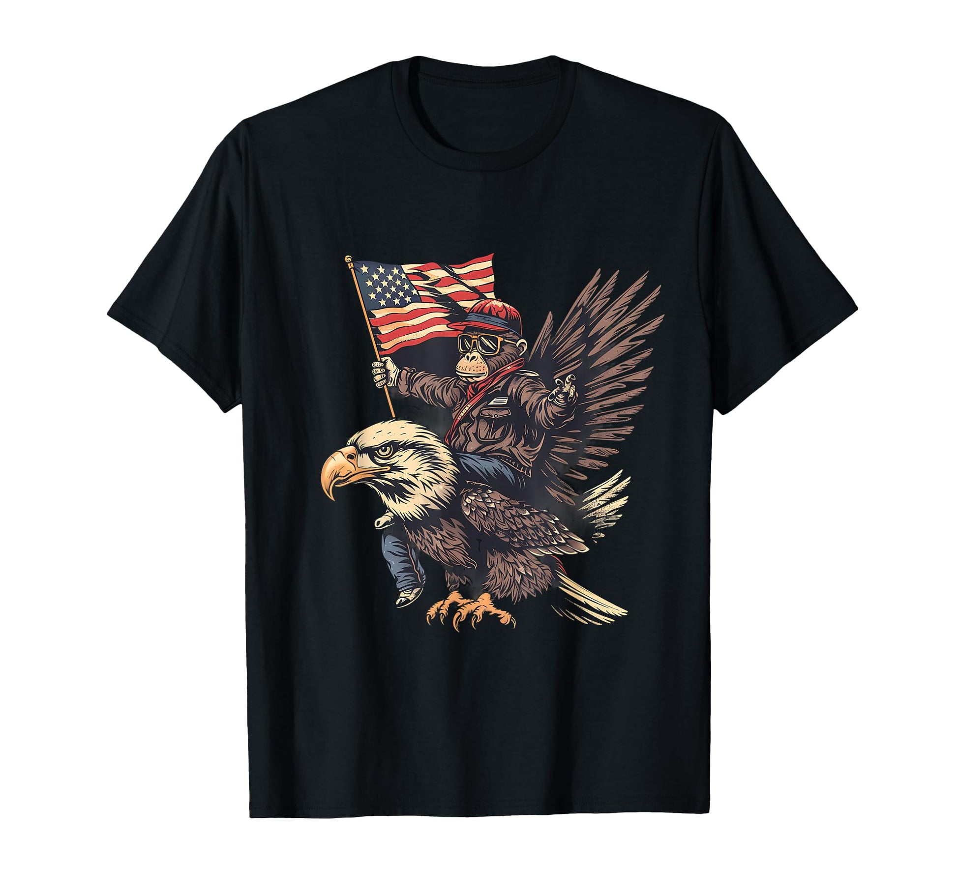 Funny Monkey Bald Eagle USA American Flag Fourth Of July T-Shirt for Women Kids Men