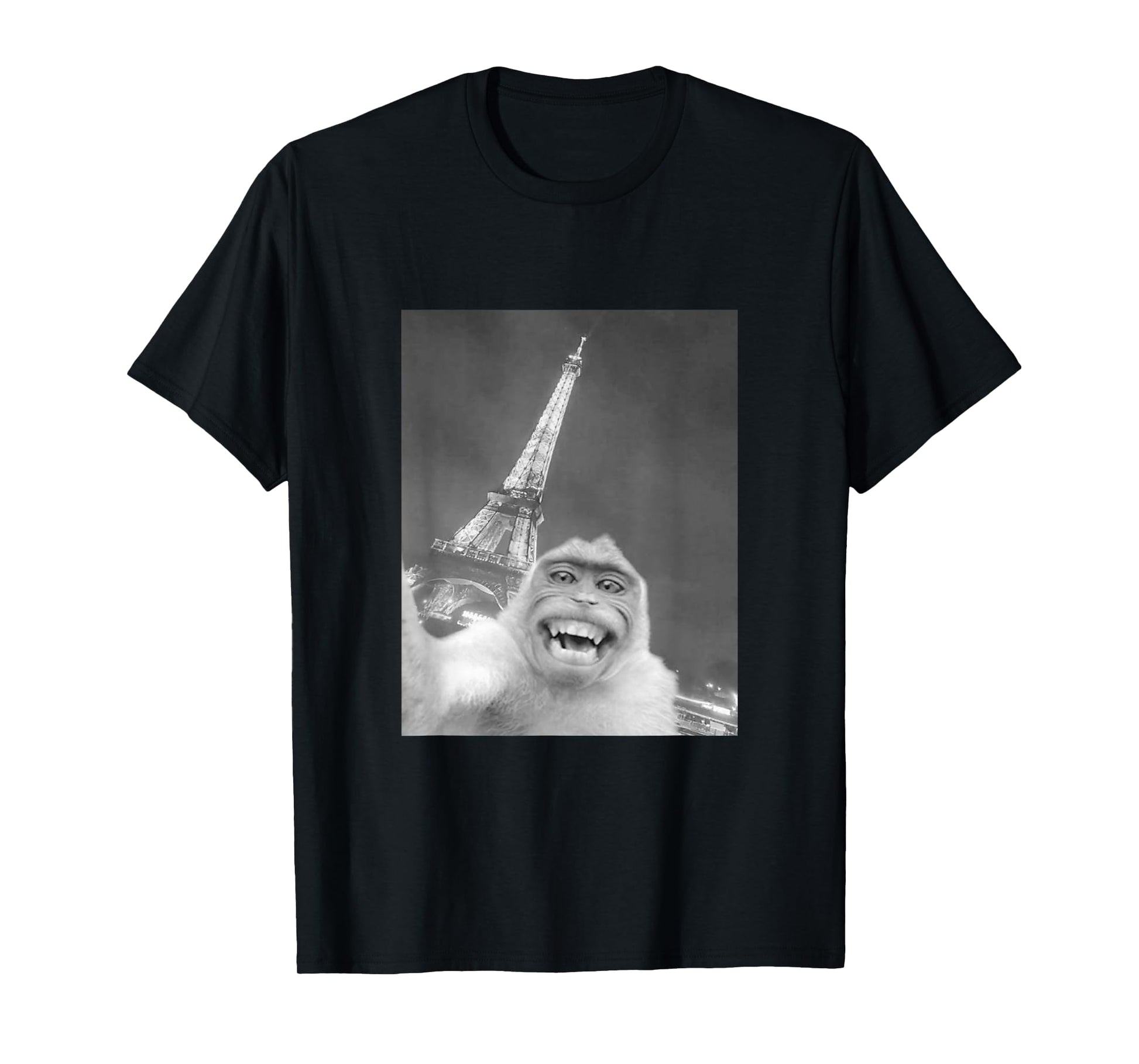 Funny Monkey Selfie Eiffel Tower In Paris Men Women Kids T-Shirt