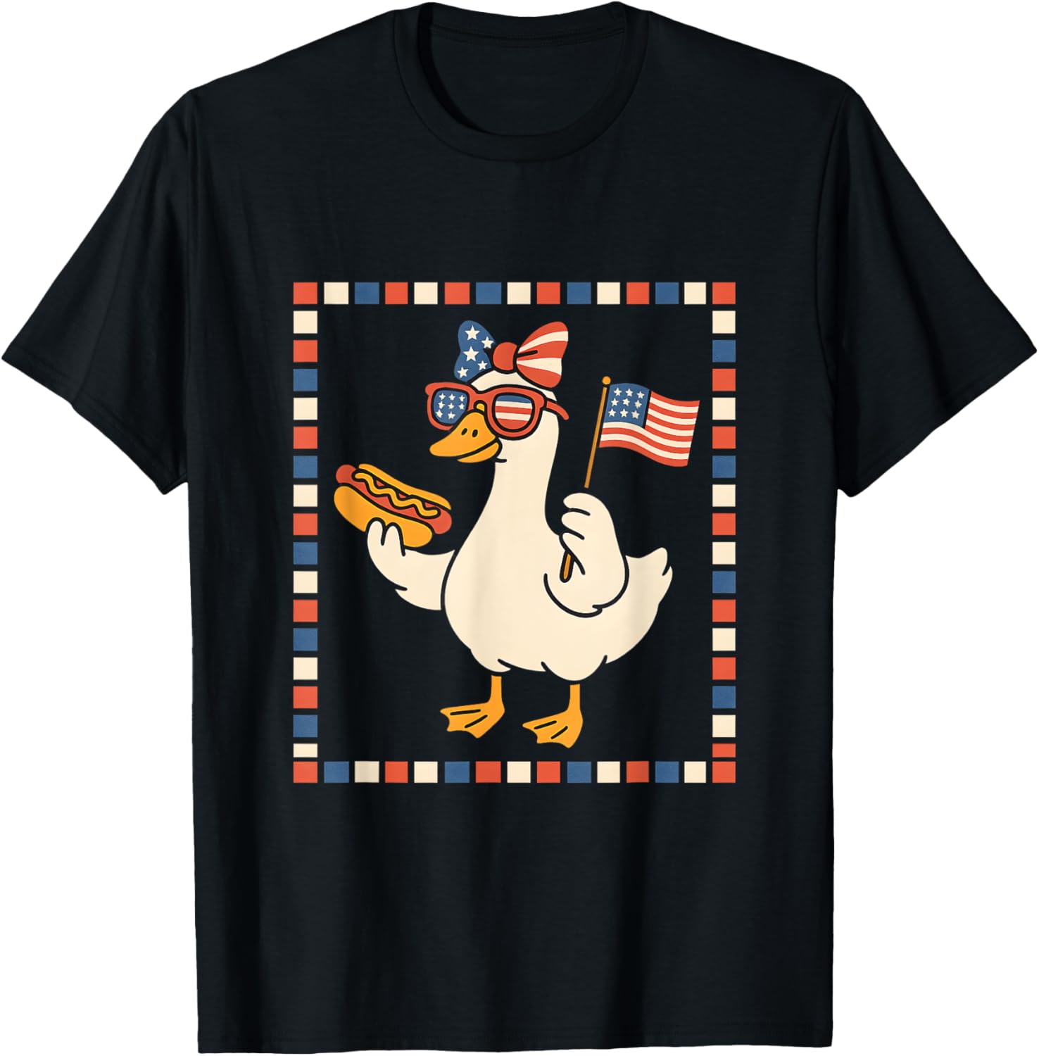 Funny Patriotic Goose USA Flag Hotdog 4th of July Party T-Shirt