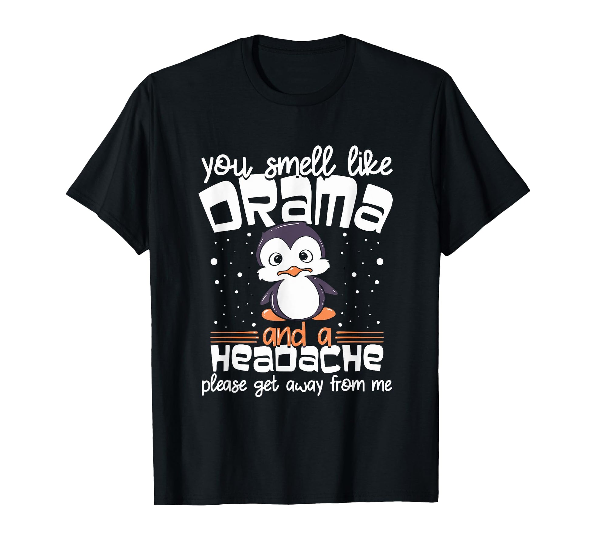 Funny Penguin Drama and Headache Design for Introverts T-Shirt