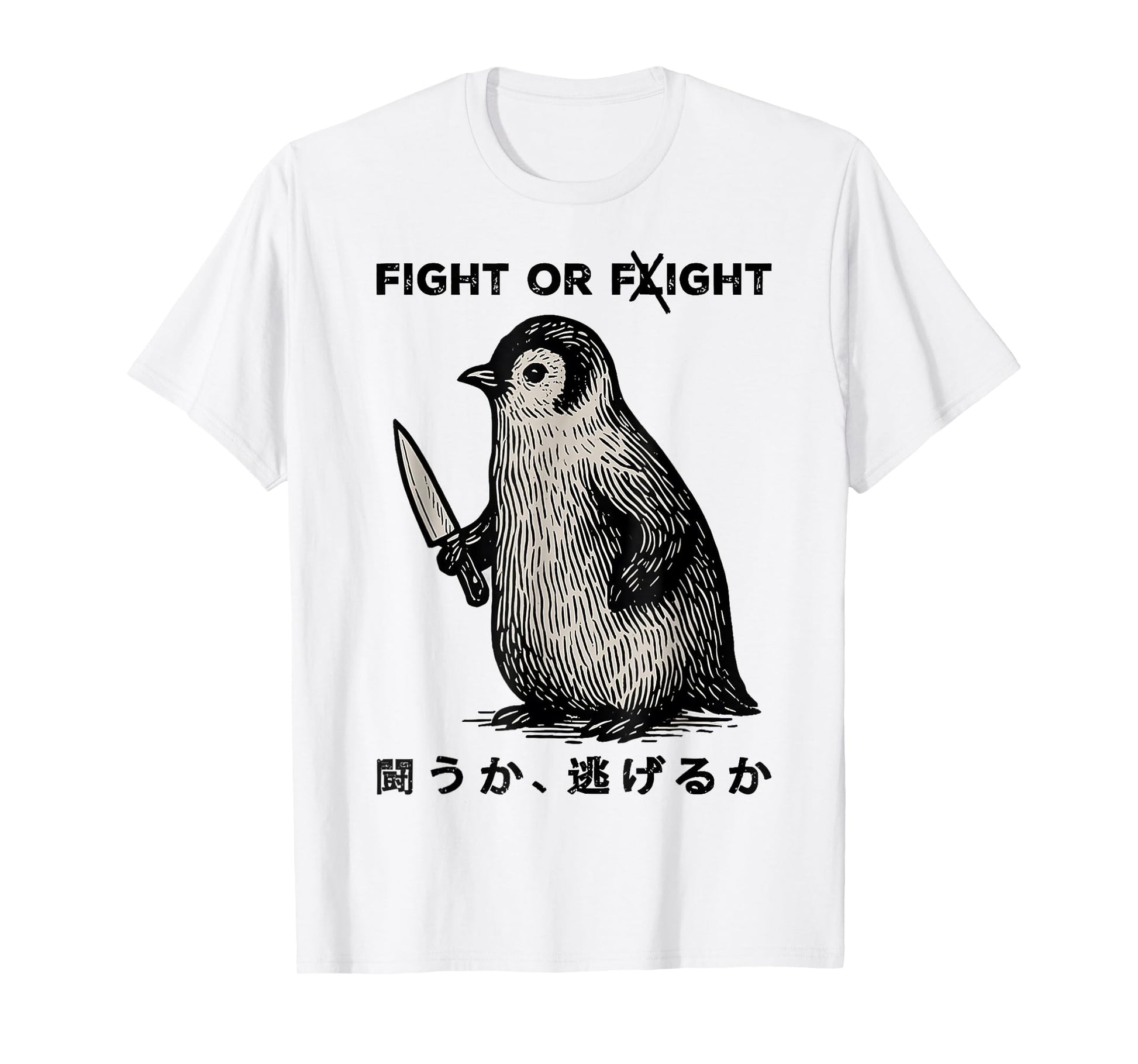 Funny Penguin Fight Or Flight Meme Penguin With Knife T-Shirt