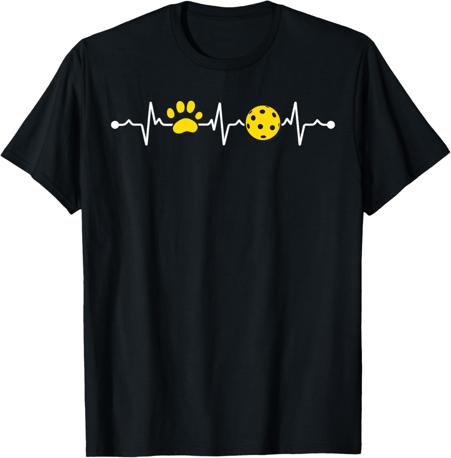 Funny Pickleball Player Heartbeat Dog Paw Heartbeat T-Shirt