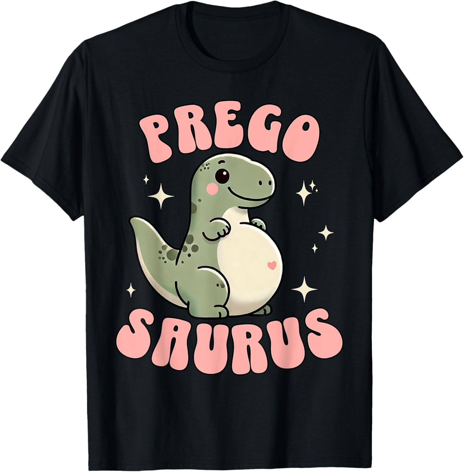Funny Pregnant Mom Expecting Mama To Be Tees Pregosaurus Cute Retro Mommy Dinosaur Pregnancy Announcement T-Shirt, Small, Black