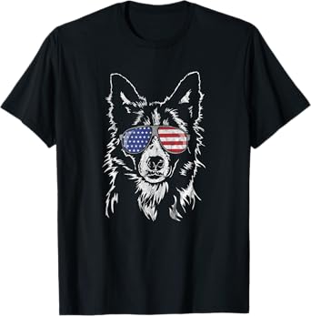 Funny Proud Border Collie American Flag sunglasses gift dog T-Shirt