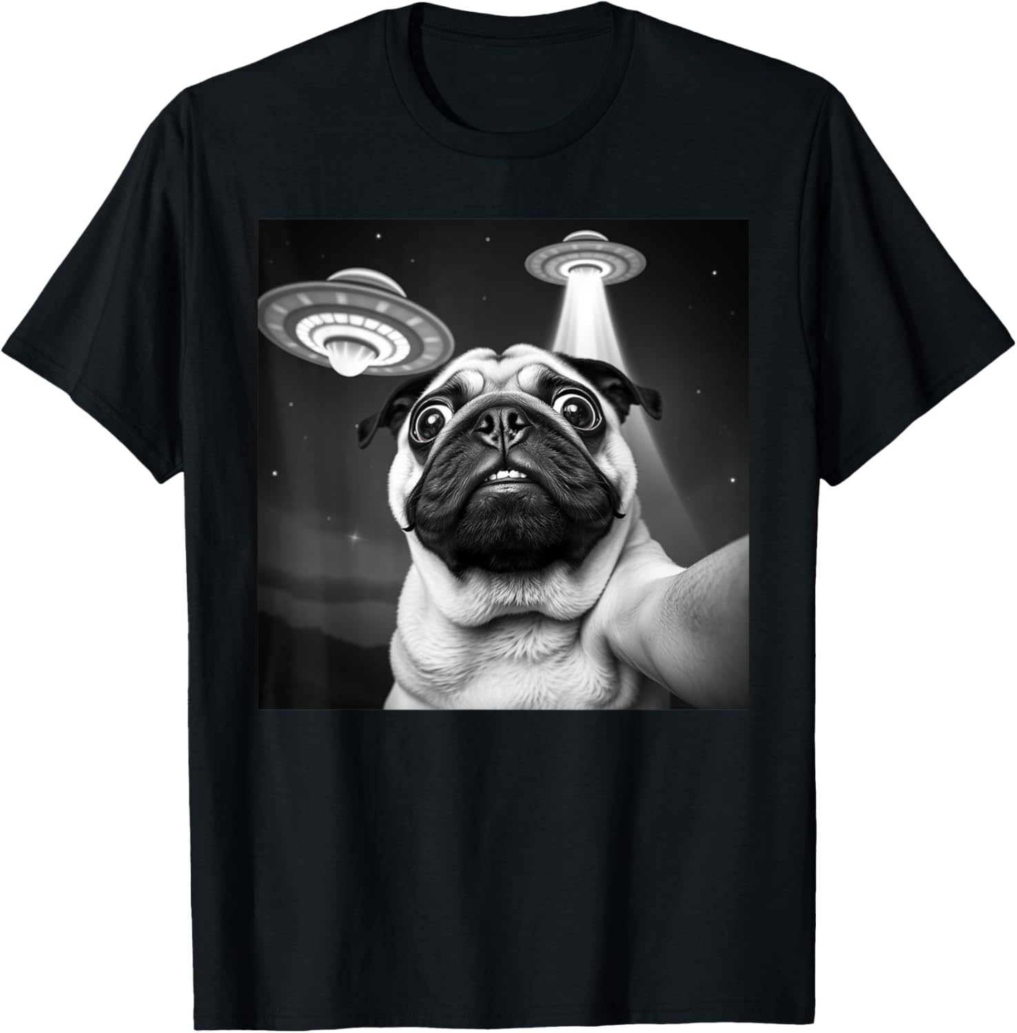 Funny Pug Selfie Alien UFO Dog Lover Novelty Graphic T-Shirt