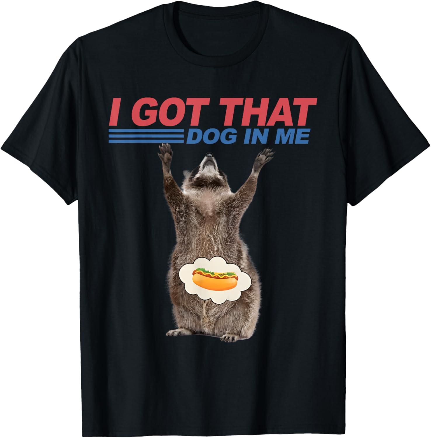 Funny Raccoon Meme Hot Dog I Got That Dog In Me 4th of July T-Shirt