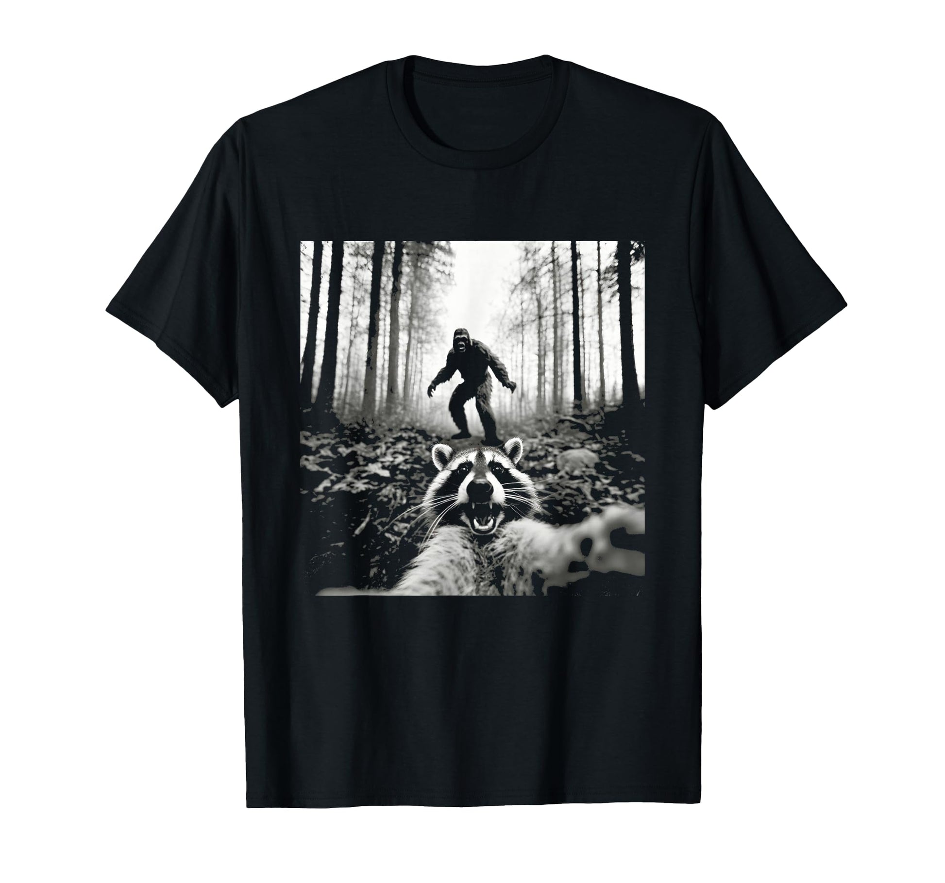 Funny Raccoon Selfie with Sasquatch Bigfoot T-Shirt