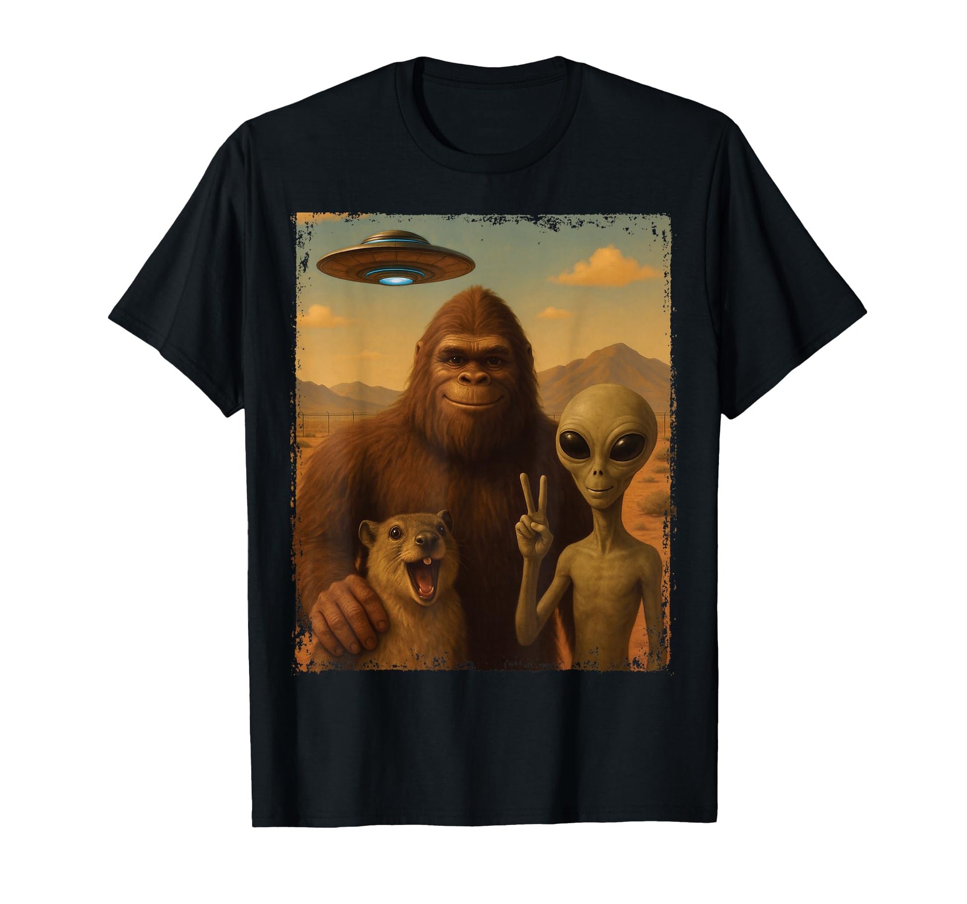 Funny Rock Hyrax Awawa Bigfoot Alien Selfie UFO Area 51 T-Shirt