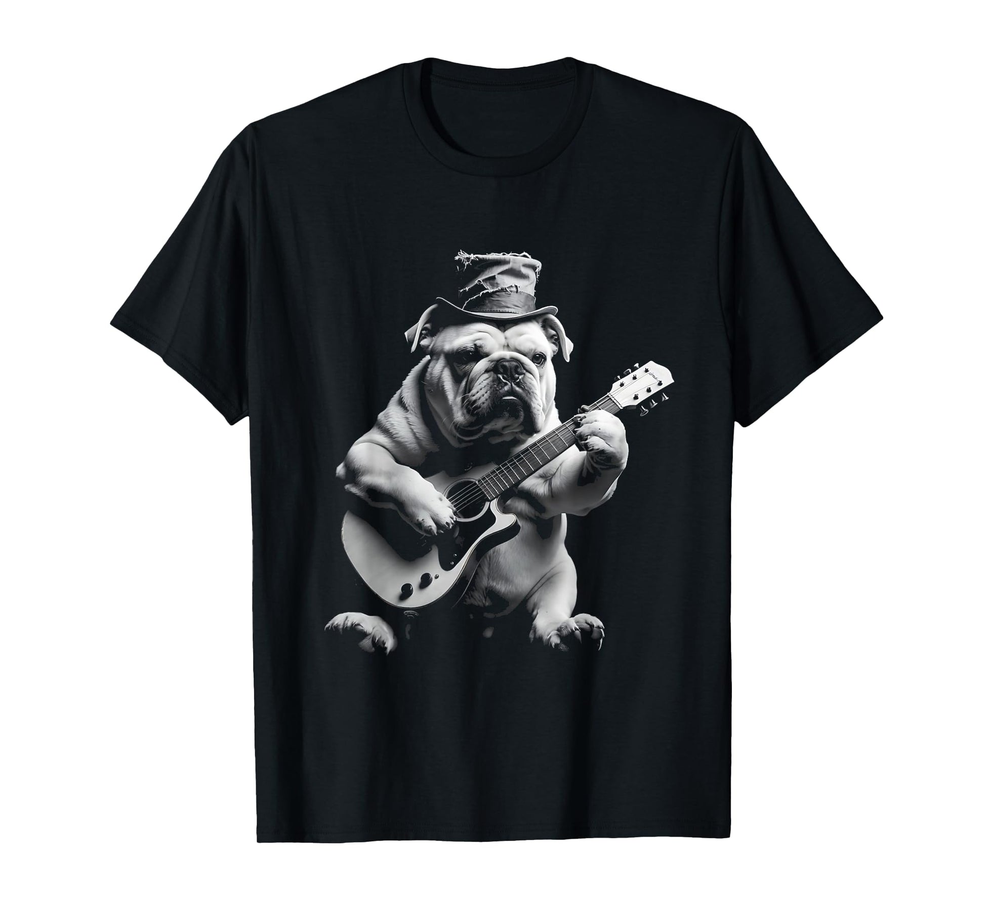 Funny Rock Star Bulldog Playing Guitar T-Shirt