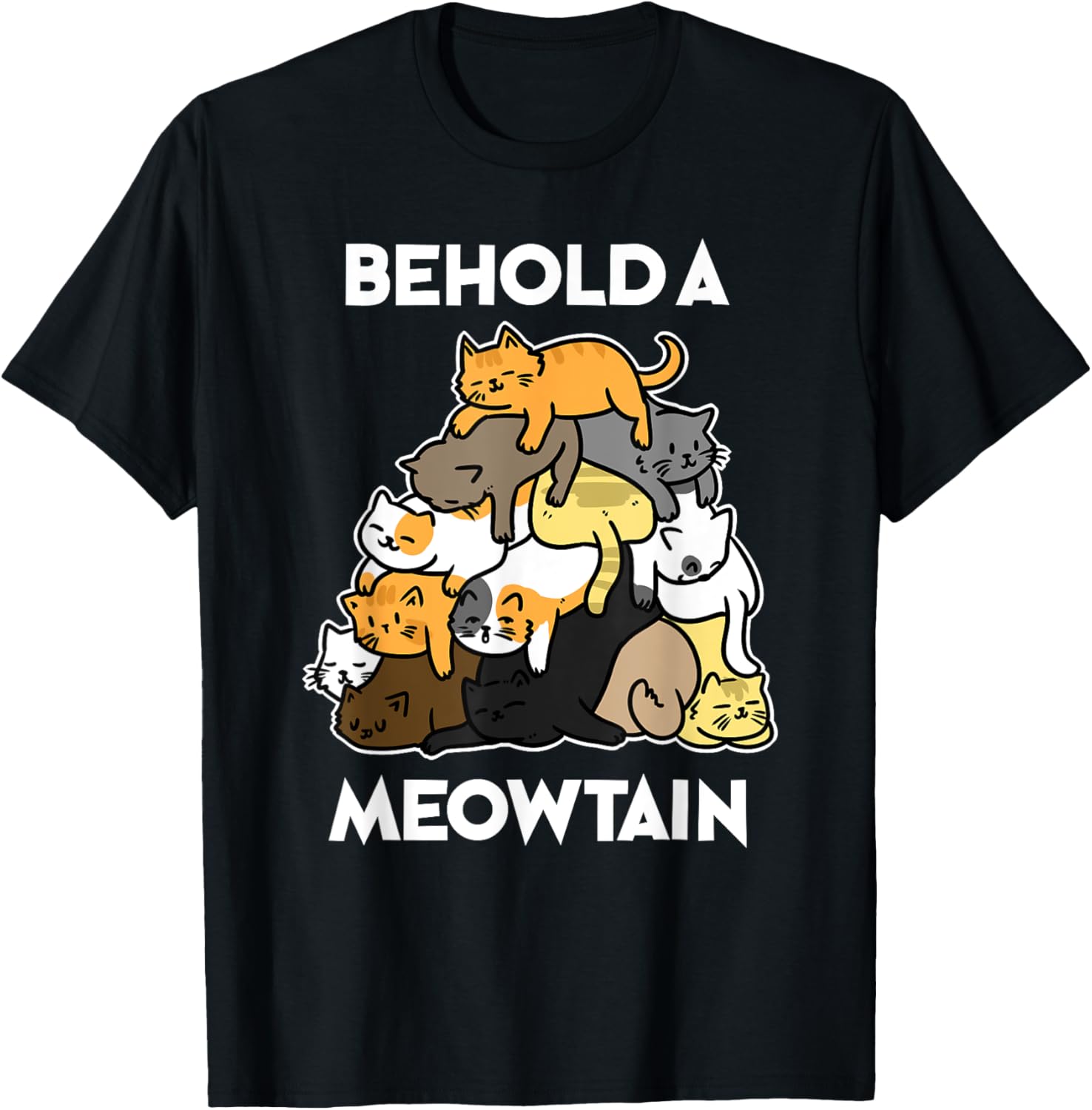 Funny Cat T-Shirt Behold A Meowtain Cat Mountain T-Shirt T-Shirt