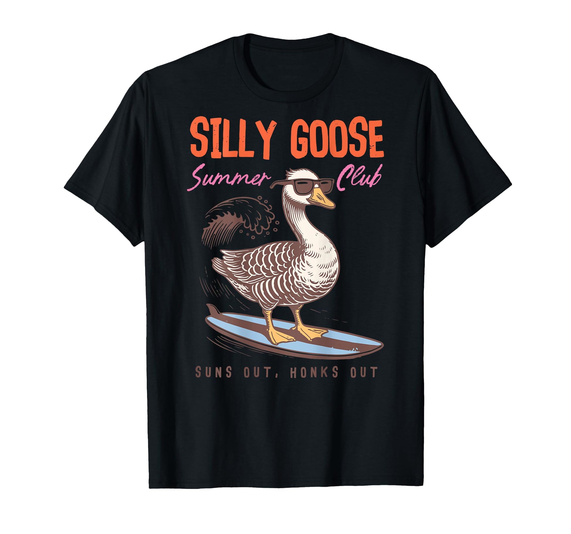 Funny Silly Goose Summer Club Surfer Bird Suns Out Honks Out T-Shirt