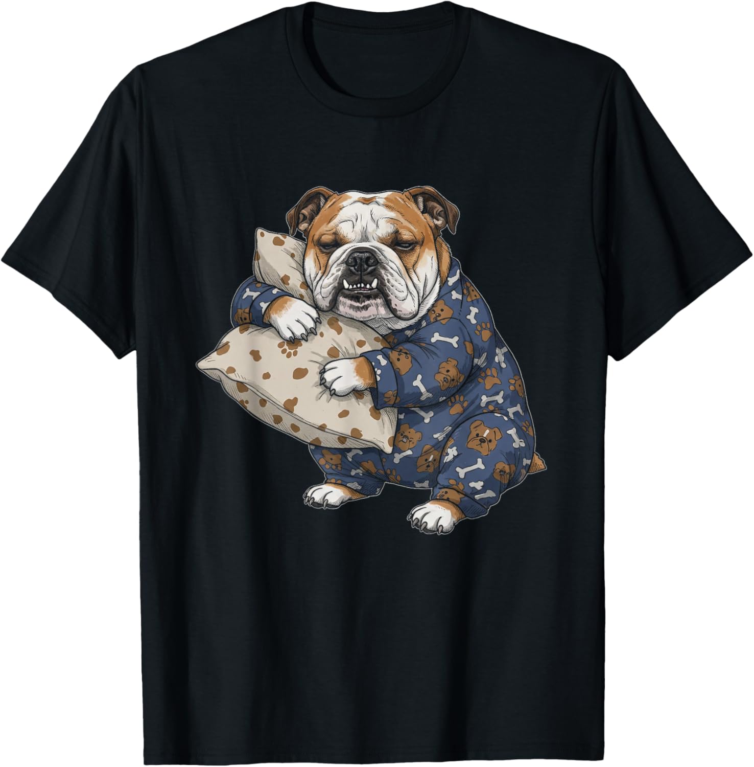 Funny Sleepy English Bulldog Pajama Men Women Kids T-Shirt