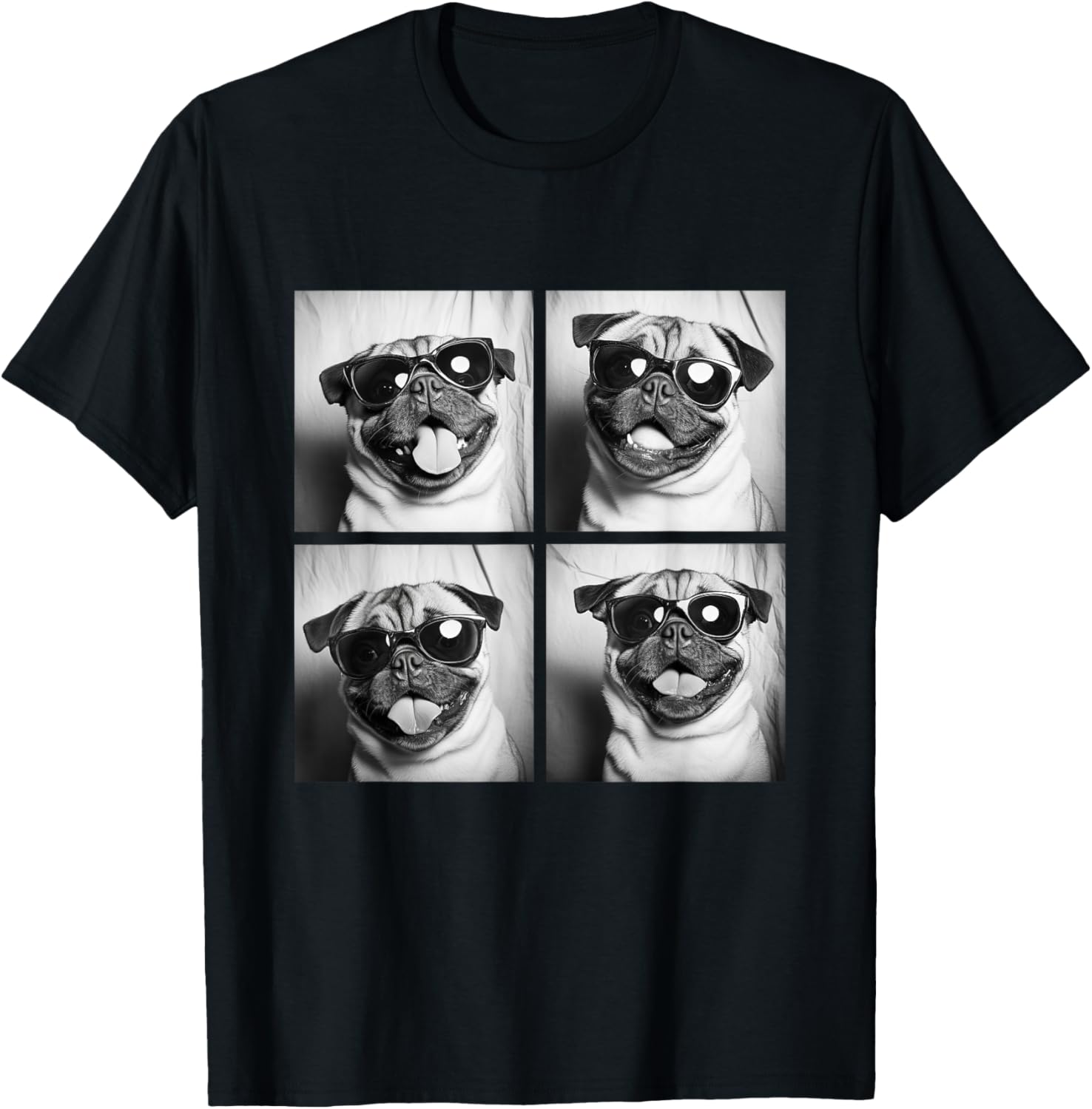 Funny Dogs Cute Pugs with Sunglasses Photo Booth Pets Meme T-Shirt