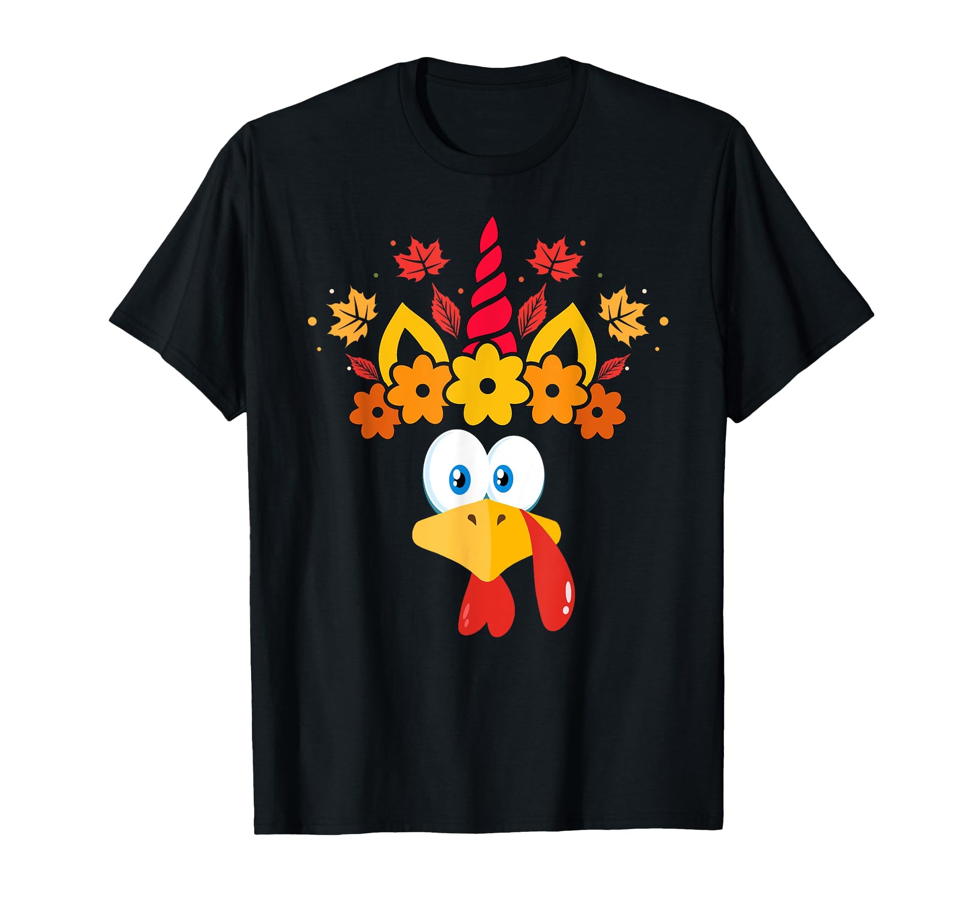 Funny Turkey Unicorn Face Girls Thanksgiving Kids T-Shirt