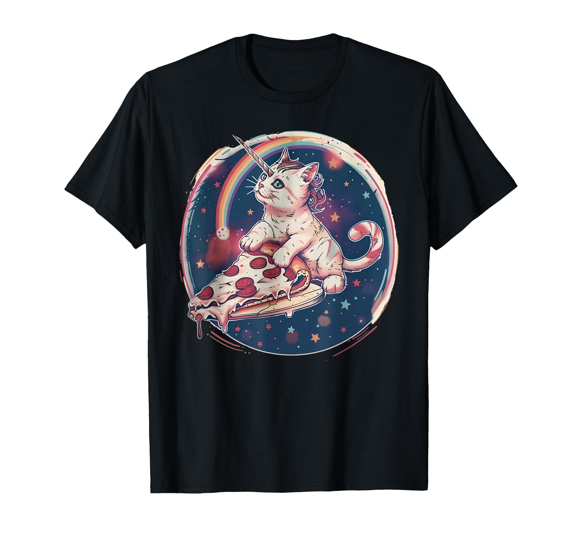 Funny Uni-Cat Flying A Pizza Unicorn Kitten Space Cats Lover Men Women Kids T-Shirt
