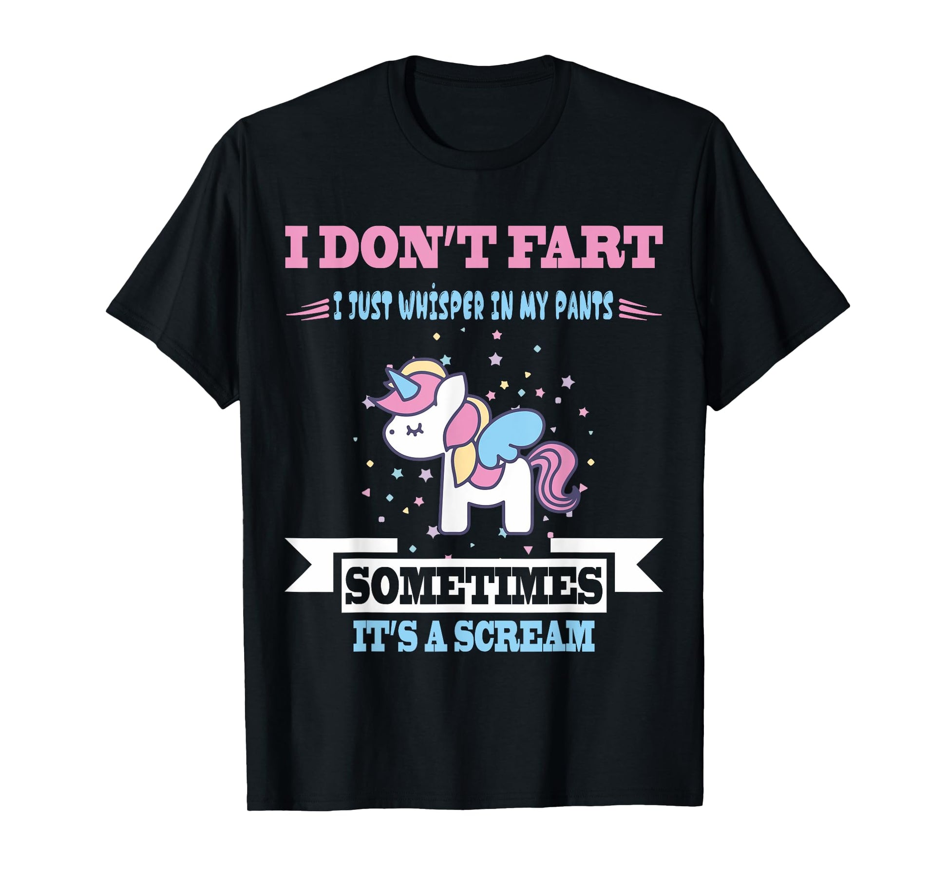 Funny Unicorn Fart Tshirt Humor I Don't Fart I Whisper In My T-Shirt