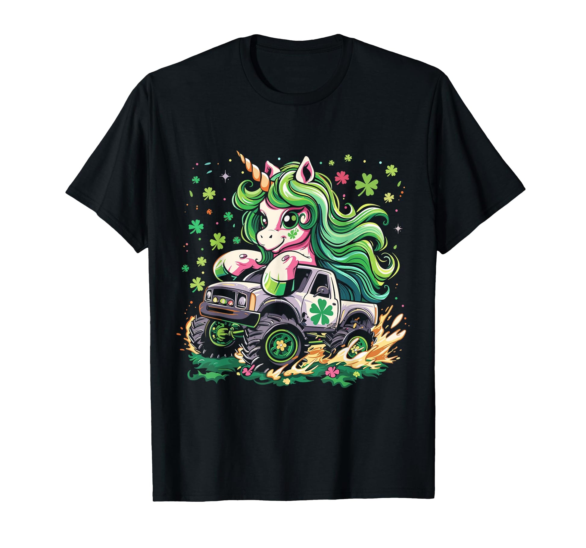Funny Unicorn Riding Monster Truck Irish St Patricks Day T-Shirt