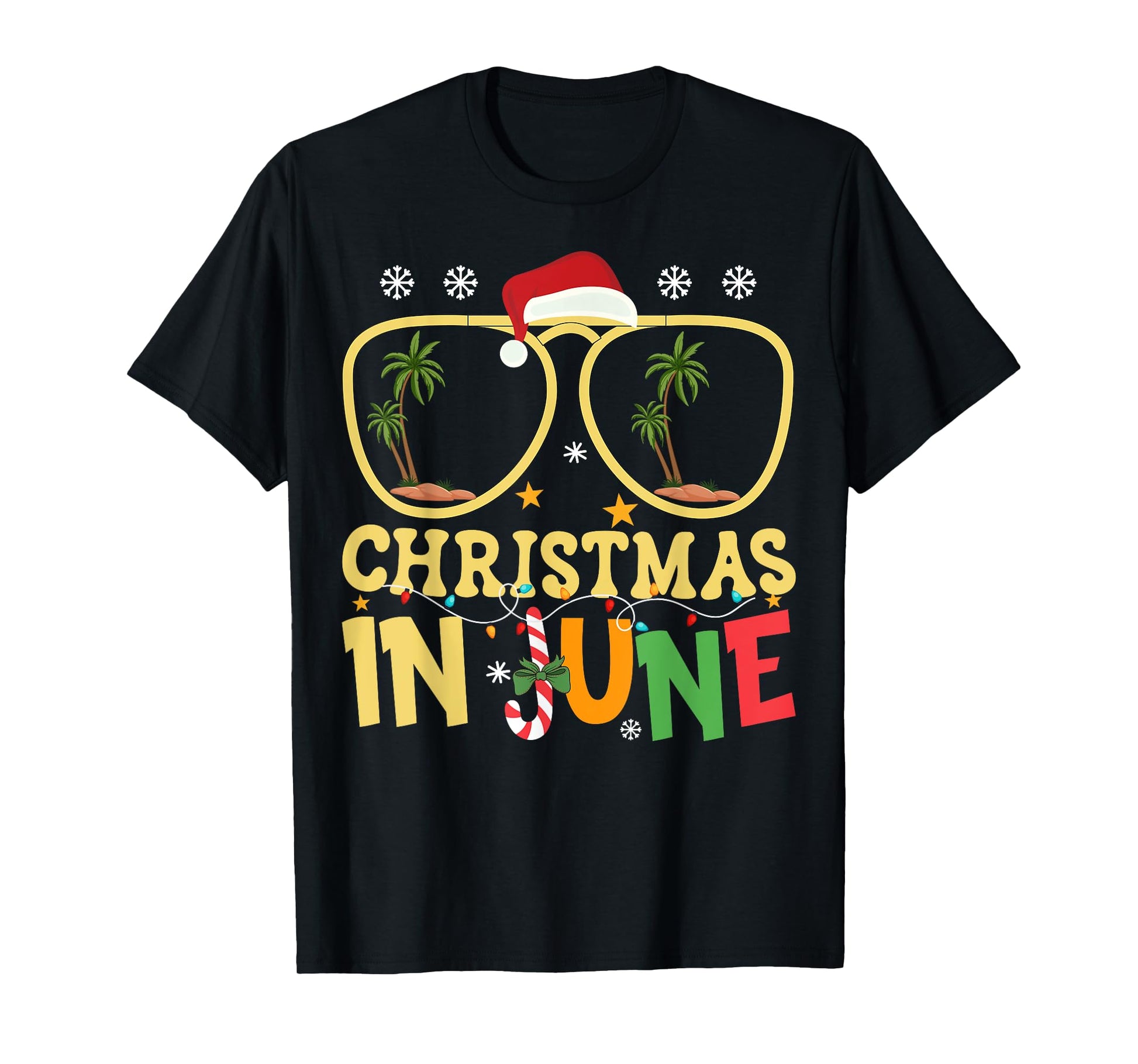 Funny Vacation Christmas In June Santa Hat Xmas Summer T-Shirt