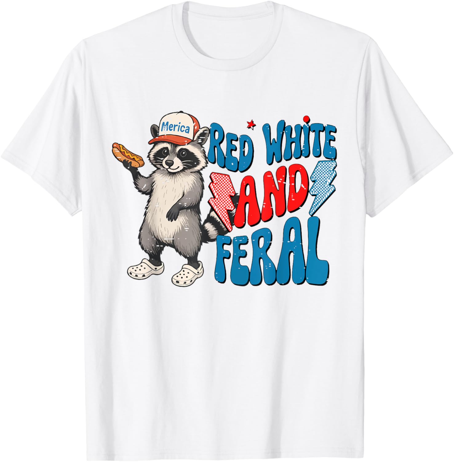 Funny Red White And Feral America Raccoon Hotdog 4th Of July T-Shirt