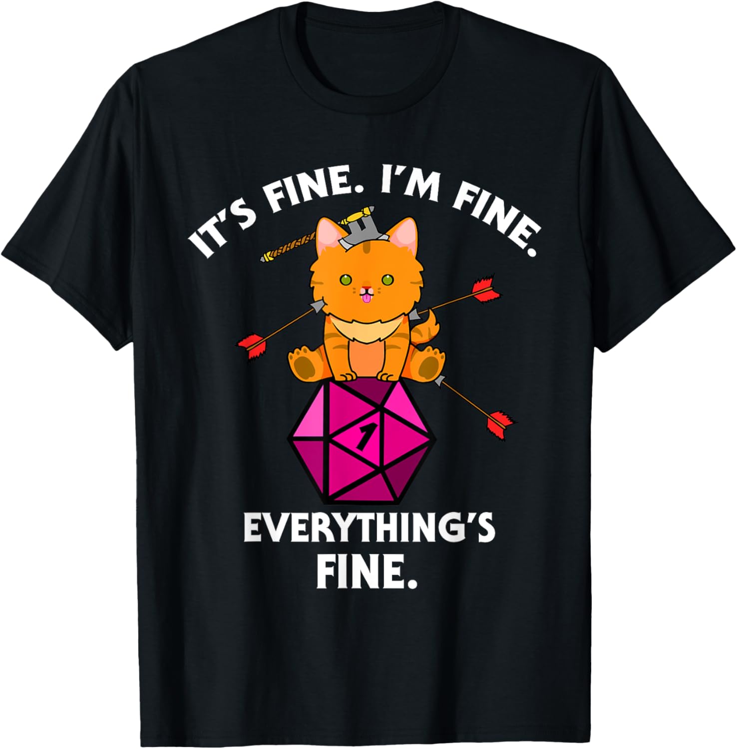 It's Fine RPG Gamer Cat D20 Dice Fail Funny Nerdy Geek T-Shirt