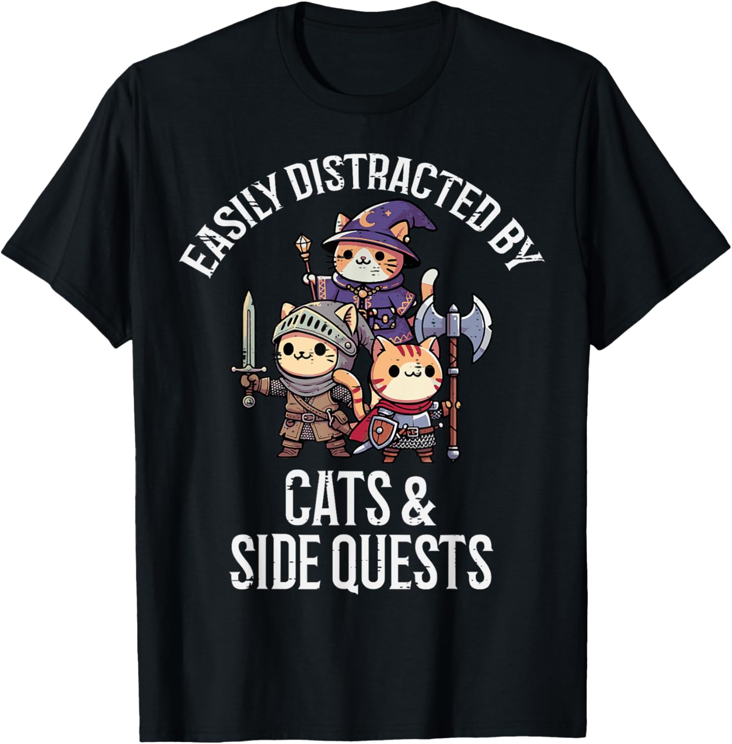 Gamer Easily Distracted By Cats Side Quests Men Boys Kids T-Shirt