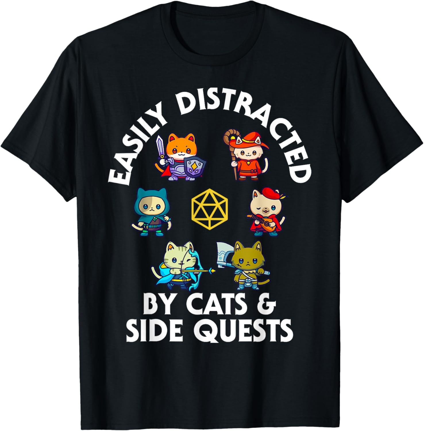 RPG Gamer Cats Side Quest Funny Nerd ADHD Cat Men Women Kids T-Shirt