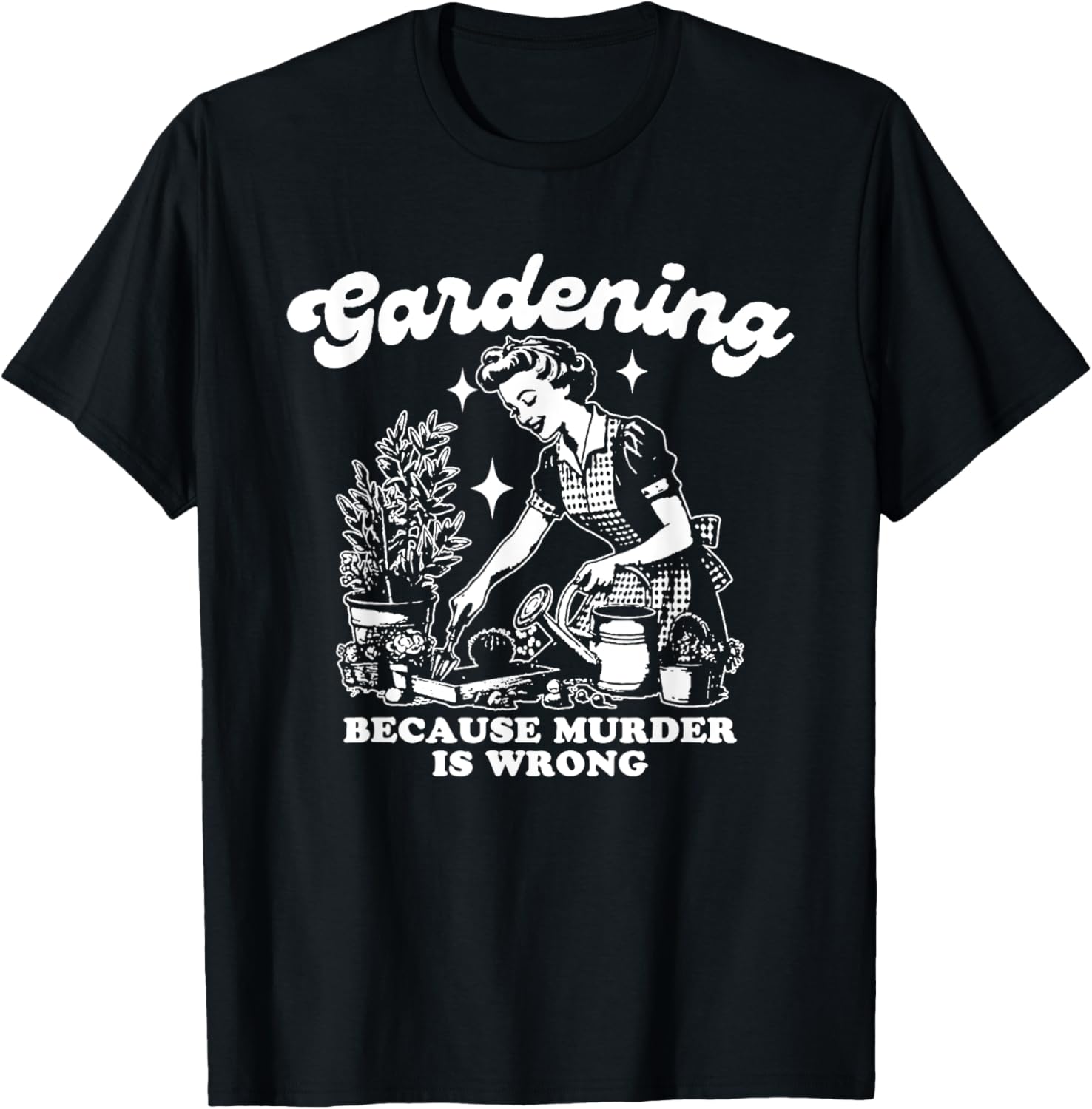 Gardening Because Murder Is Wrong, Funny Women Gardening T-Shirt