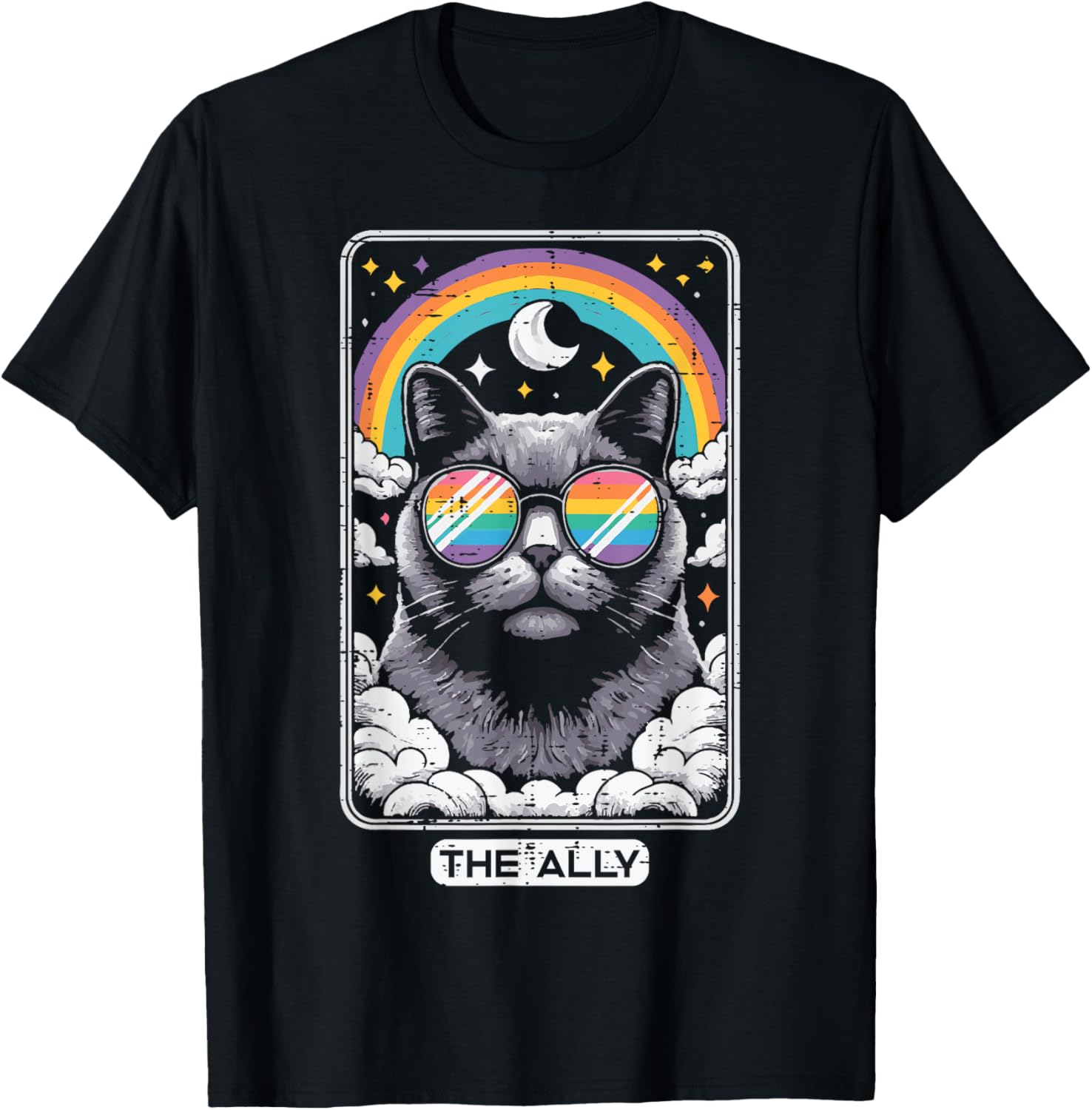 Gay Pride Month Cat Card The Ally LGBTQ Rainbow Men Women T-Shirt