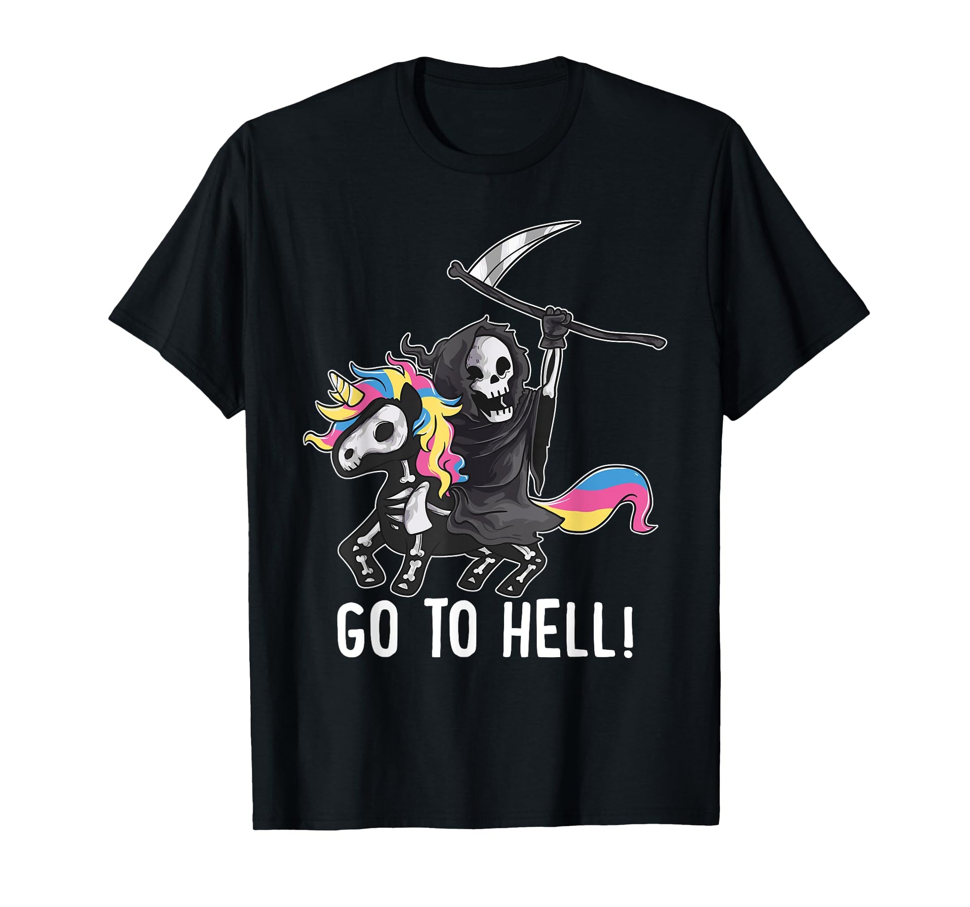 Gehe zum Hölle Unicorn Sugar Skull Grim Reaper Halloween T-Shirt