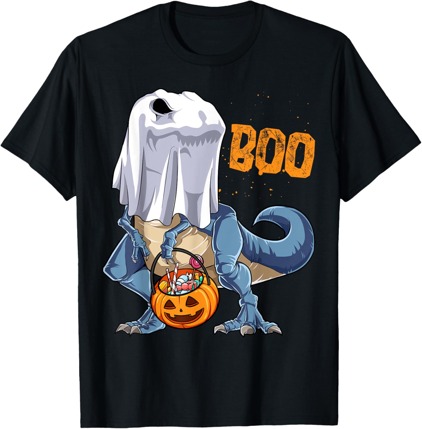 Ghost Dinosaur T rex Funny Boo Halloween Boys Men Pumpkin T-Shirt