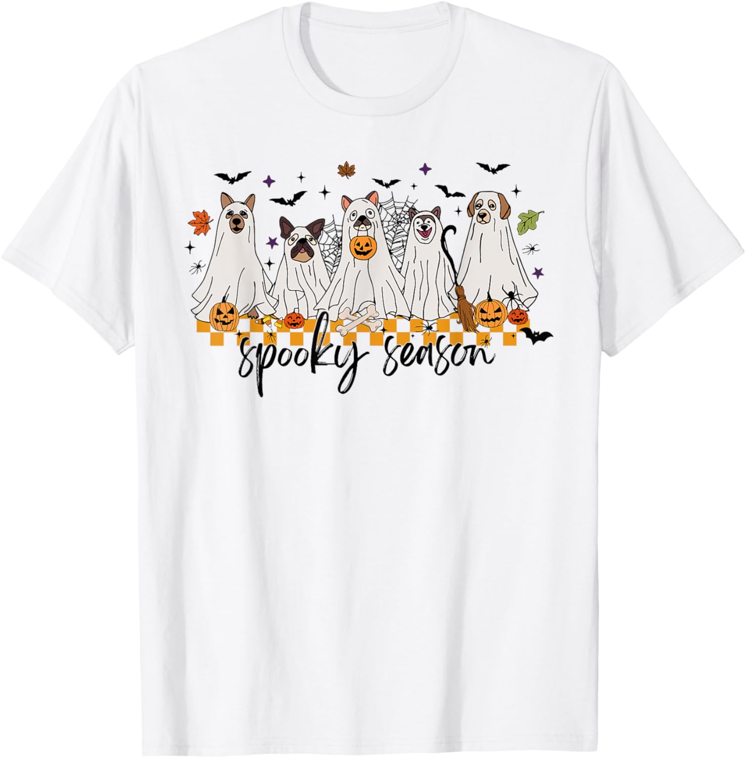 Halloween Dogs Ghost Pumpkins Spooky Season Dog Lover T-Shirt