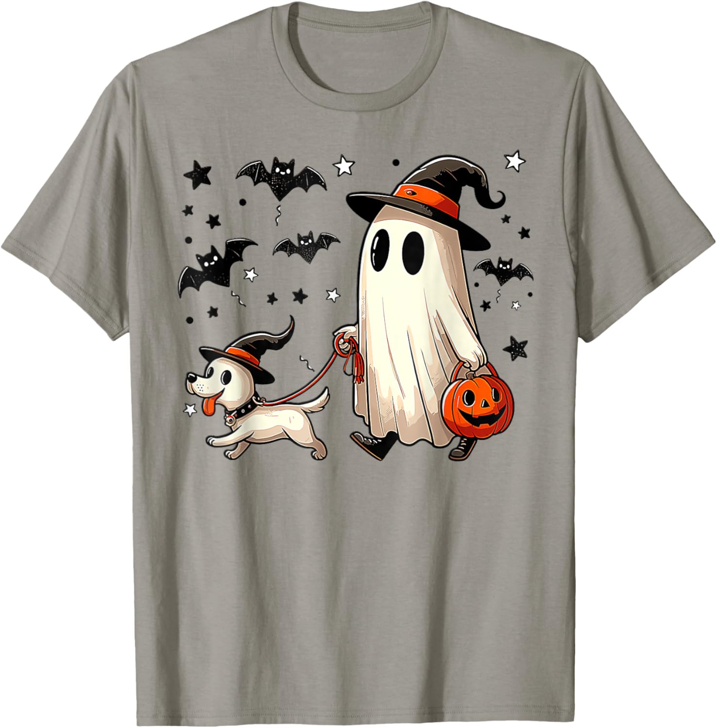 Ghost Walking Dog Spooky Season Halloween T-Shirt