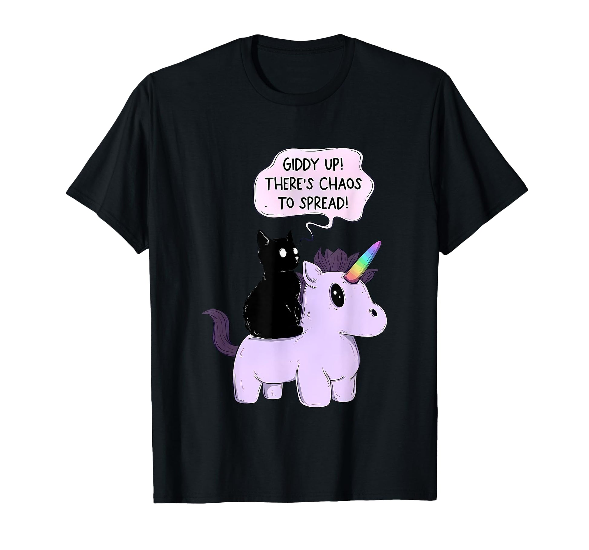 Giddy Up! There Is Chaos To Spread Cute Cat Ride Unicorn T-Shirt for Men Women
